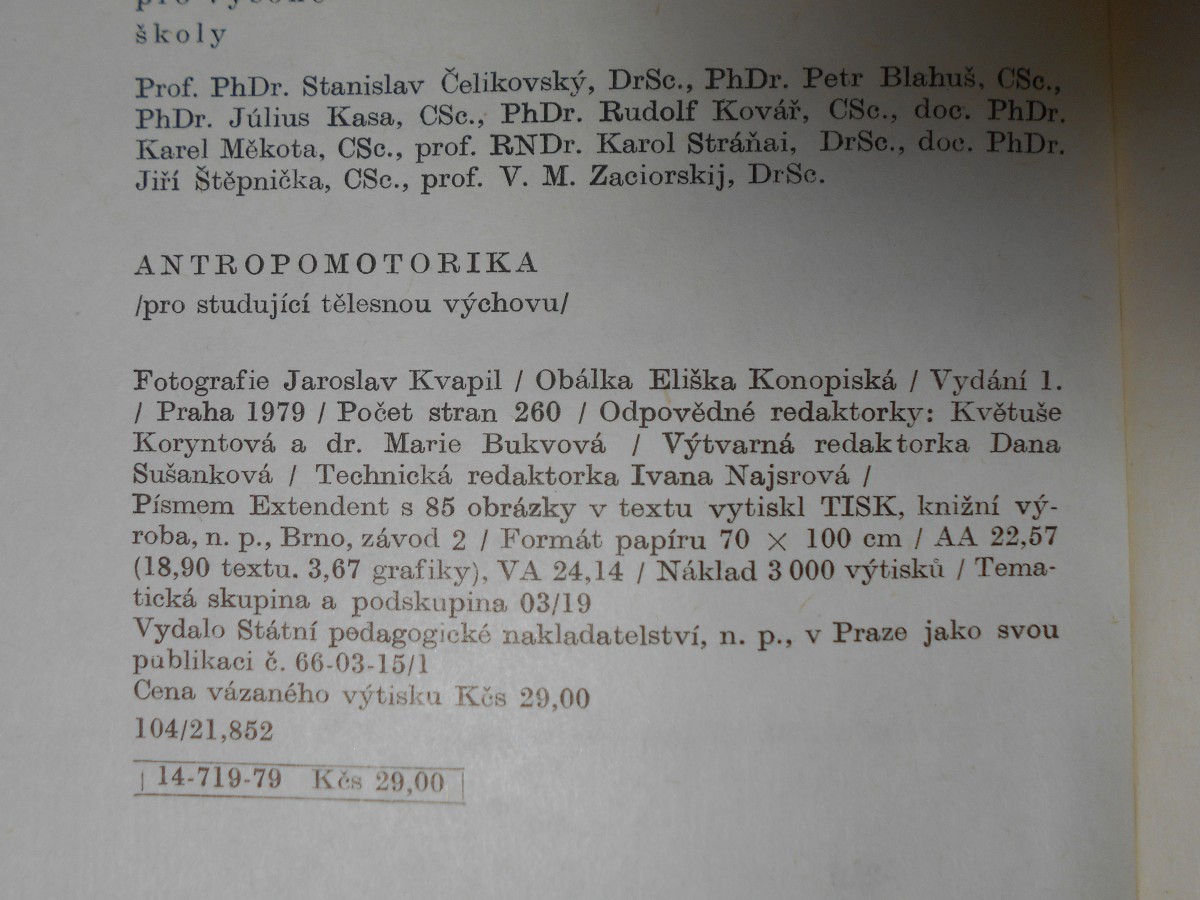 Antropomotorika pro studující tělesnou výchovu, 1979