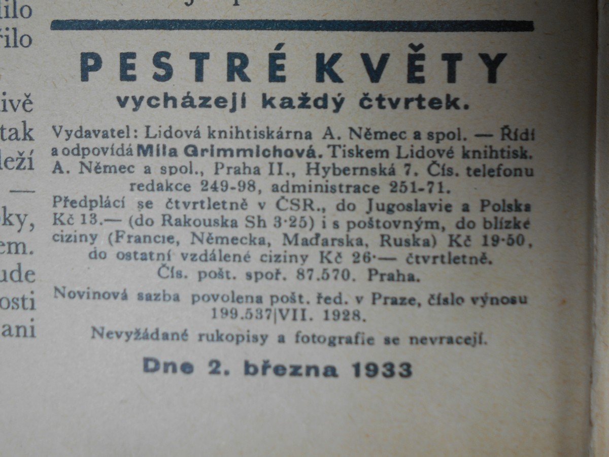 Pestré květy : Obrázkový týdeník, ročník V, číslo 26. - 50, 1933