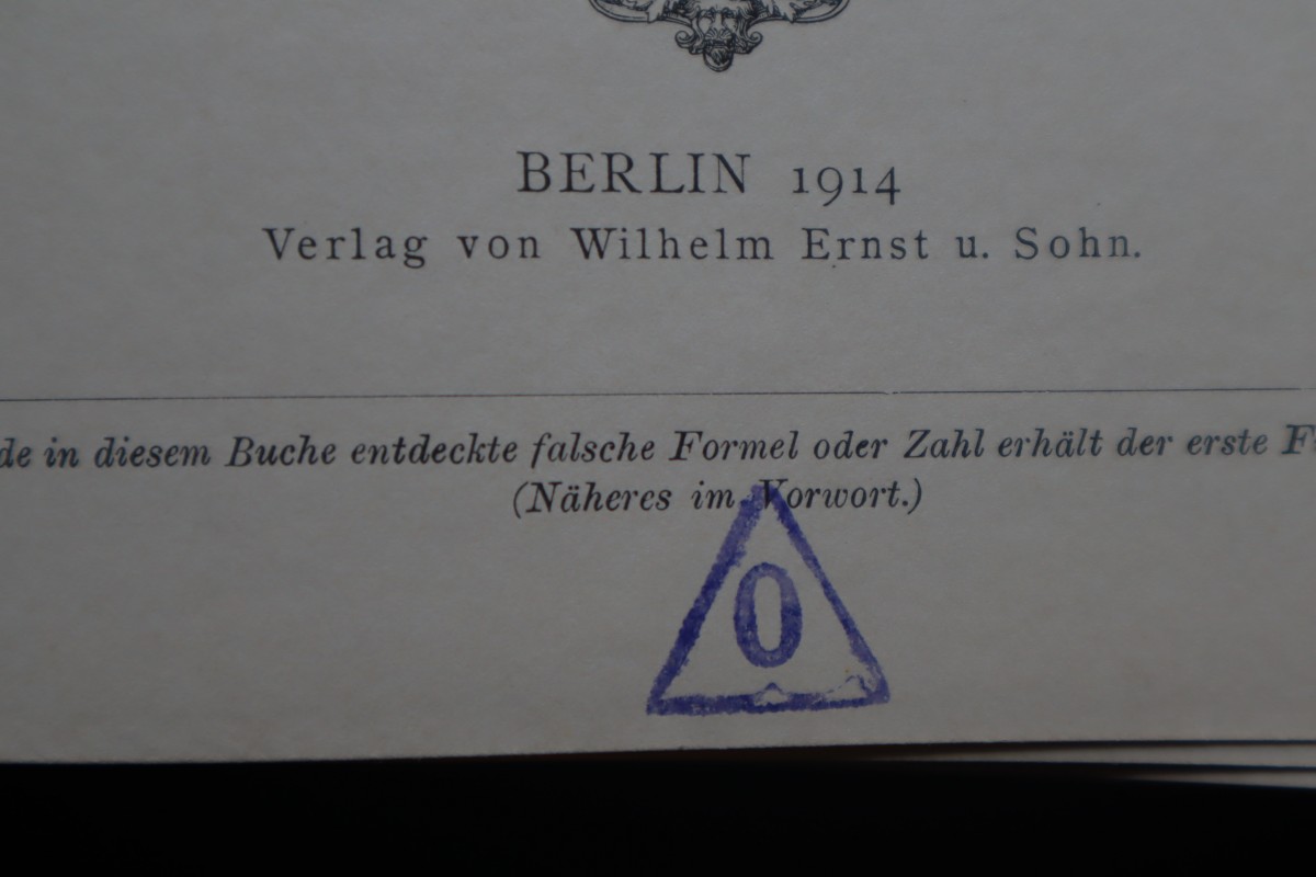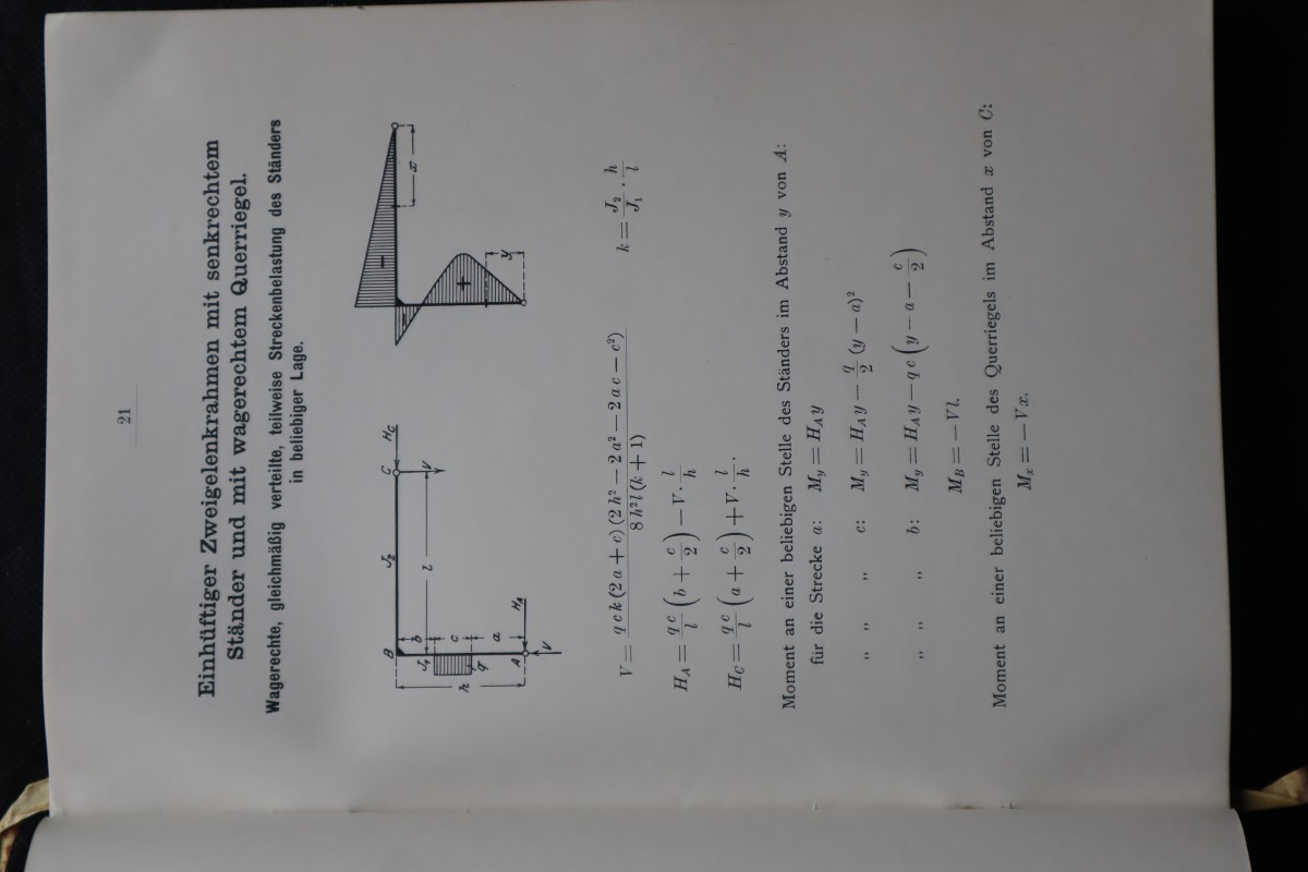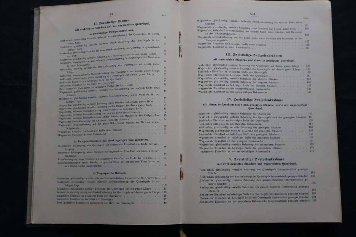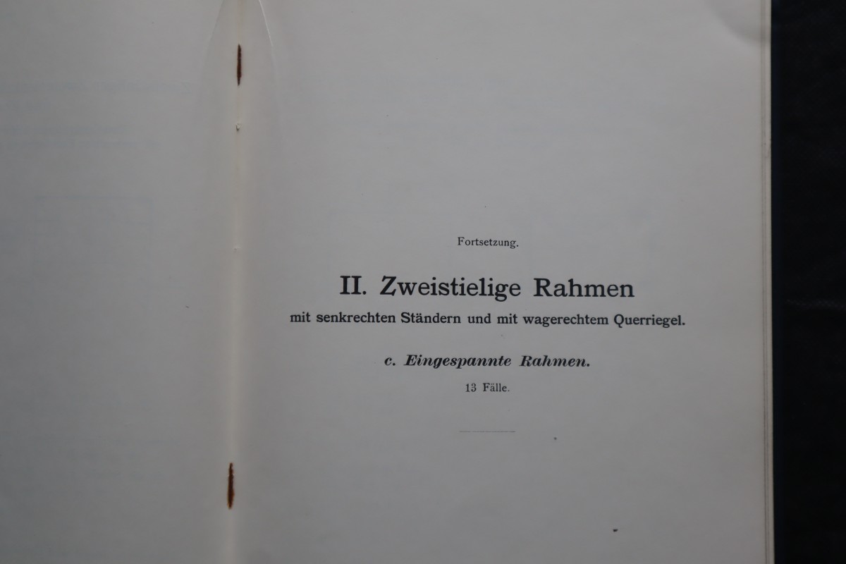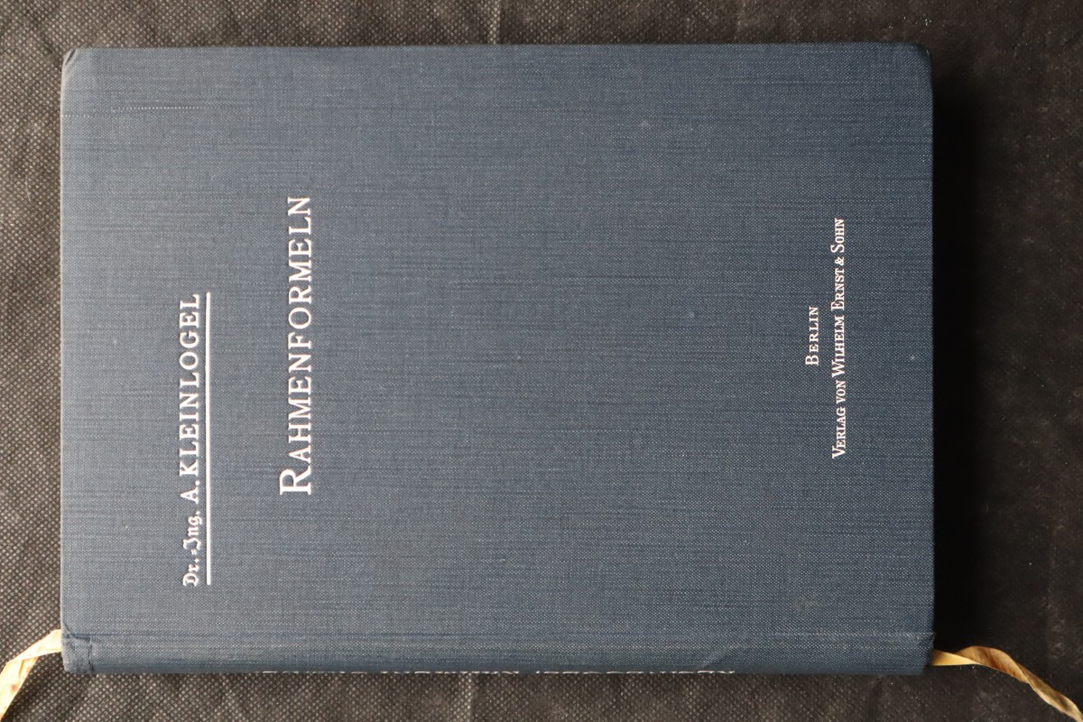 | Digitalizovaná tiráž: | RAHMENFORMELN Gebrauchsfertige Formeln für einhüftige, zweistielige, dreieckförmige und geschlossene Rahmen aus Eisen- oder Eisen- betonkonstruktion nebst Anhang mit Sonder- fällen teilweise und ganz eingespannter Träger von Dr.-Ing. A. KLEINLOGEL Privatdozent an der Techn. Hochschule Darmstadt 169 Rahmenfälle mit 338 Abbildungen BERLIN 1914 Verlag von Wilhelm Ernst u. Sohn. Für jede in diesem Buche entdeckte falsche Formel oder Zahl erhält der erste Finder 10 Mk. (Näheres im Koricort.) |