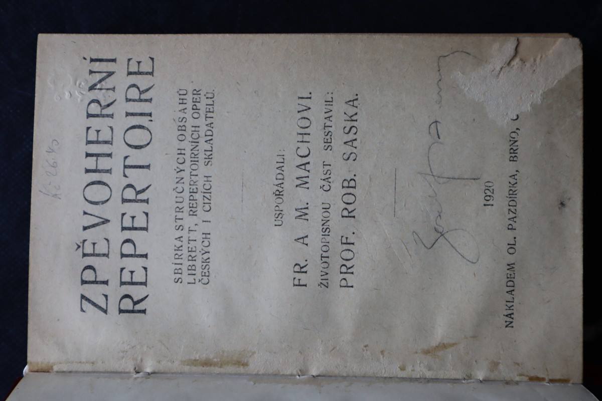 | Digitalizovaná tiráž: | Ki 26.40 ZPĚVOHERNÍ REPERTOIRE SBÍRKA STRUČNÝCH OBSAHU LIBRETT, REPERTOIRNÍCH OPER ČESKÝCH I CIZÍCH SKLADATELŮ. USPOŘÁDALI: FR. A M. MACHOVI. ŽIVOTOPISNOU ČÁST SESTAVIL: PROF. ROB. SASKA. 1920 NÁKLADEM OL. PAZDÍRKA, BRNO, C |