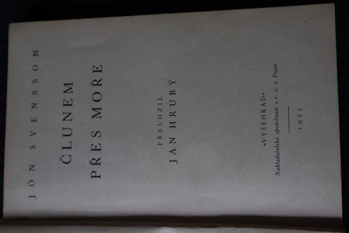 | Digitalizovaná tiráž: | JÓN SVENSSON ČLUNEM PRES MORE PŘELOŽIL JAN HRUBÝ »VYŠEHRAD«< Nakladatelská společnost Sr. o. v Praze 1935 |