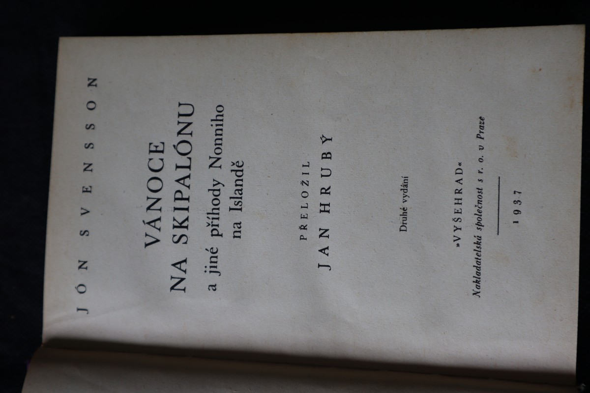 | Digitalizovaná tiráž: | JÓN SVENSSON VÁNOCE NA SKIPALÓNU a jiné příhody Nonniho na Islandě PŘELOŽIL JAN HRUBÝ Druhé vydání »VYŠEHRAD<< Nakladatelská společnost s r. o. v Praze 1937 |