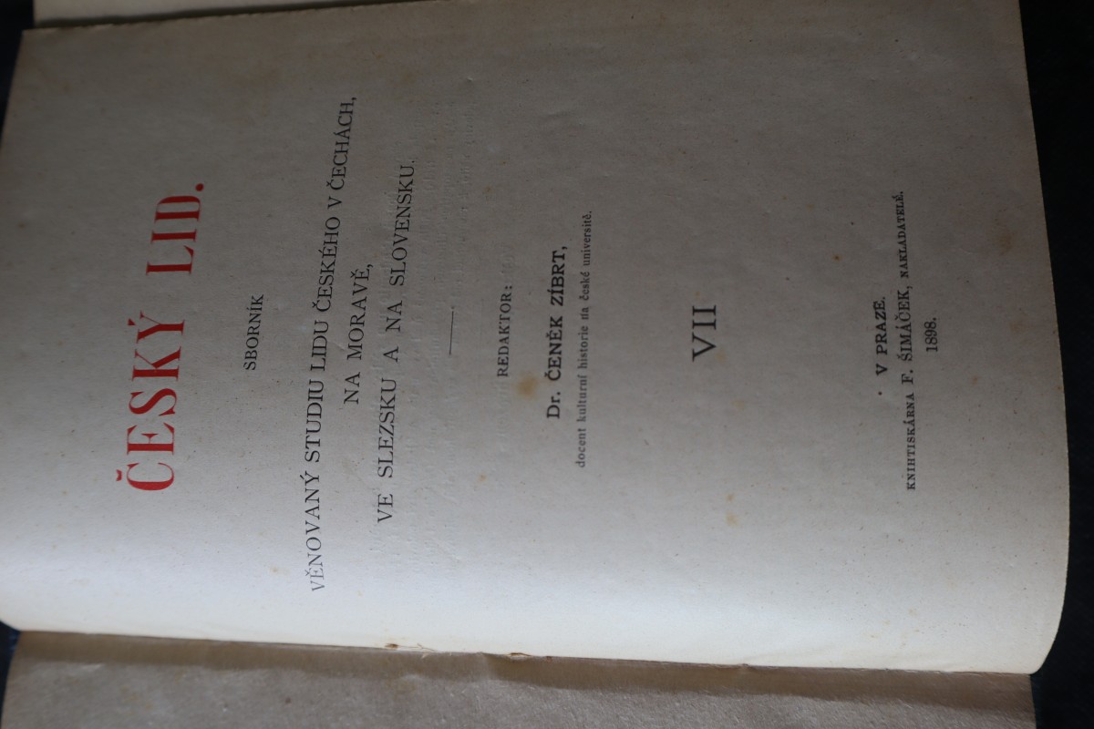| Digitalizovaná tiráž: | ČESKÝ LID. SBORNÍK VĚNOVANÝ STUDIU LIDU ČESKÉHO V ČECHÁCH, NA MORAVĚ, VE SLEZSKU A NA SLOVENSKU. REDAKTOR: 160 Dr. ČENĚK ZÍBRT, docent kulturní historie na české université. VII V PRAZE. KNIHTISKÁRNA F. ŠIMÁČEK, NAKLADATELÉ 1898. |
