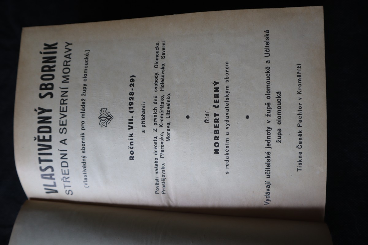 | Digitalizovaná tiráž: | VLASTIVĚDNÝ SBORNÍK STŘEDNÍ A SEVERNÍ MORAVY (Vlastivědný sborník pro mládež župy olomoucké.) Ročník VII. (1928-29) s přílohami: Pověsti našeho dorostu, Z prvních dnů svobody, Olomoucko, Prostějovsko, Přerovsko, Kroměřížsko, Holešovsko, Severní Morava, Litovelsko. Řídí NORBERT ČERNÝ s redakčním a vydavatelským sborem Vydávají učitelské jednoty v župě olomoucké a Učitelská župa olomoucká Tiskne Čeněk Pechtor v Kroměříži |
