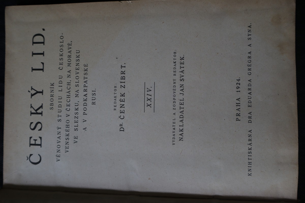| Digitalizovaná tiráž: | ČESKÝ LID. SBORNÍK VĚNOVANÝ STUDIU LIDU ČESKOSLO- VENSKÉHO V ČECHÁCH, NA MORAVĚ, VE SLEZSKU, NA SLOVENSKU A V PODKARPATSKÉ RUSI. REDAKTOR: DR. ČENĚK ZÍBRT. XXIV. VYDAVATEL A ZODPOVĚDNÝ REDAKTOR: NAKLADATEL JAN SVÁTEK. PRAHA 1924. KNIH TISKÁRNA DRA EDUARDA GRÉGRA A SYNA. |