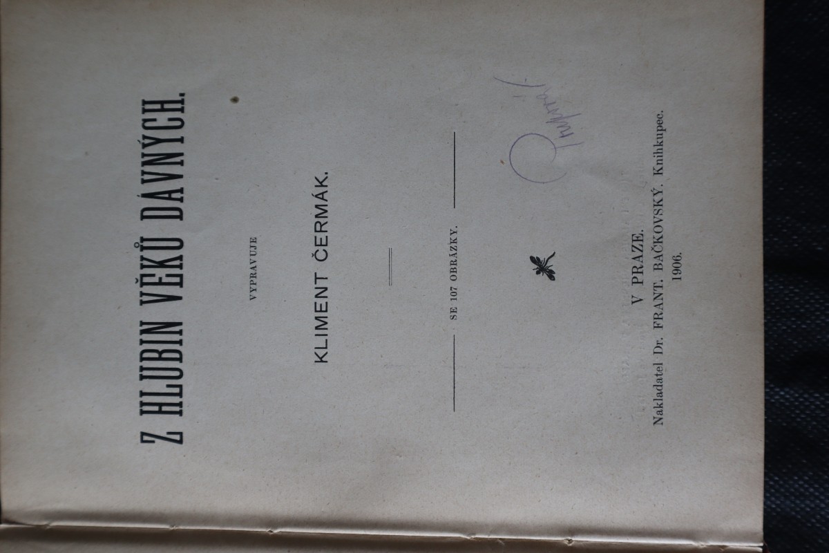 Digitalizovaná tiráž: | Z HLUBIN VĚKU DAVNÝCH. VYPRAVUJE KLIMENT ČERMÁK. SE 107 OBRÁZKY. V PRAZE. Nakladatel Dr. FRANT. BAČKOVSKÝ. Knihkupec. 1906. |