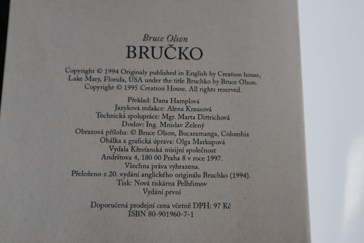 Digitalizovaná tiráž: | Bruce Olson BRUČKO Copyright ©1994 Originaly published in English by Creation house, Lake Mary, Florida, USA under the title Bruchko by Bruce Olson. Copyright © 1995 Creation House. All rights reserved. Překlad: Dana Hamplová Jazyková redakce: Alena Krausová Technická spolupráce: Mgr. Marta Dittrichová Doslov: Ing. Mnislav Zelený Obrazová příloha: O Bruce Olson, Bucaramanga, Colombia Obálka a grafická úprava: Olga Markupová Vydala Křesťanská misijní společnost Andrštova 4, 180 00 Praha 8 v roce 1997. Všechna práva vyhrazena. Přeloženo z 20. vydání anglického originálu Bruchko (1994). Tisk: Nová tiskárna Pelhřimov Vydání první Doporučená prodejní cena včetně DPH: 97 Kč ISBN 80-901960-7-1 |