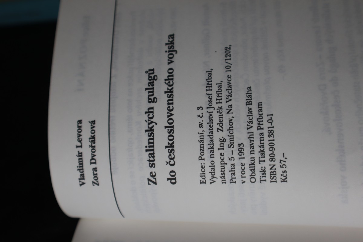 Digitalizovaná tiráž: | Vladimír Levora Zora Dvořáková Ze stalinských gulagů do československého vojska Edice: Poznání, sv. č. 3 Vydalo nakladatelství Josef Hříbal, nástupce Ing. Zdeněk Hříbal, Praha 5-Smíchov, Na Václavce 10/1202, v roce 1993 Obálku navrhl Václav Bláha Tisk: Tiskárna Příbram ISBN 80-901381-0-1 Kčs 57,- volitova sulejov orbulenavoleoslesb |
