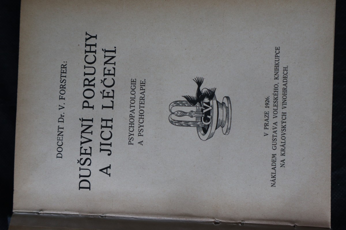 Digitalizovaná tiráž: | DOCENT Dr. V. FORSTER: DUŠEVNÍ PORUCHY A JICH LÉČENÍ. PSYCHOPATOLOGIE A PSYCHOTERAPIE. V PRAZE 1926. NÁKLADEM GUSTAVA VOLESKÉHO, KNIHKUPCE NA KRÁLOVSKÝCH VINOHRADECH. |