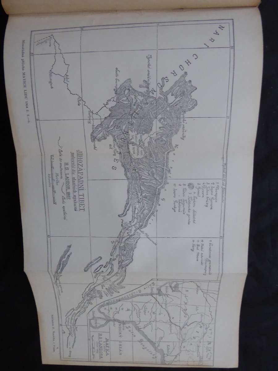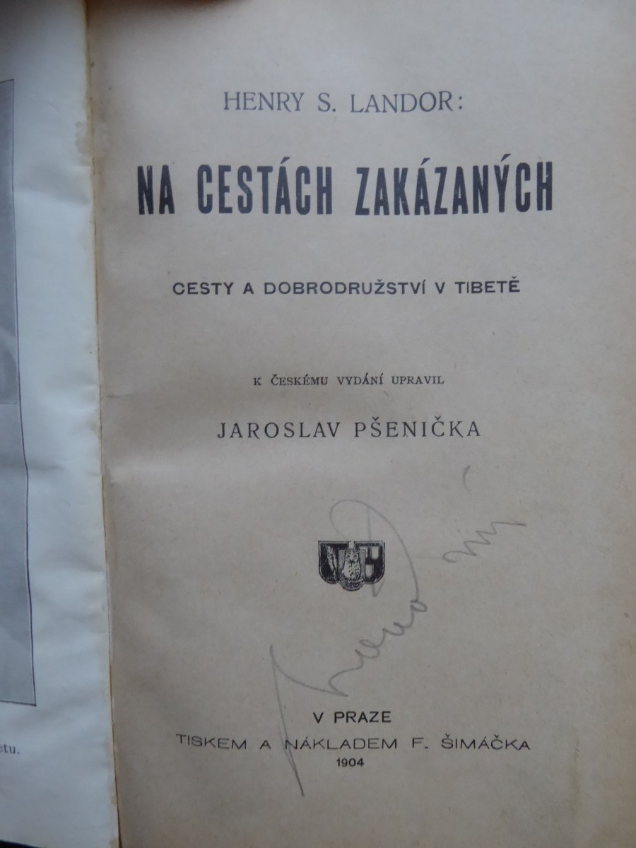 | Digitalizovaná tiráž: | HENRY S. LANDOR: NA CESTÁCH ZAKÁZANÝCH CESTY A DOBRODRUŽSTVÍ V TIBETĚ K ČESKÉMU VYDÁNÍ UPRAVIL JAROSLAV PŠENIČKA лено etu. V PRAZE TISKEM A NÁKLADEM F. ŠIMÁČKA 1904 |