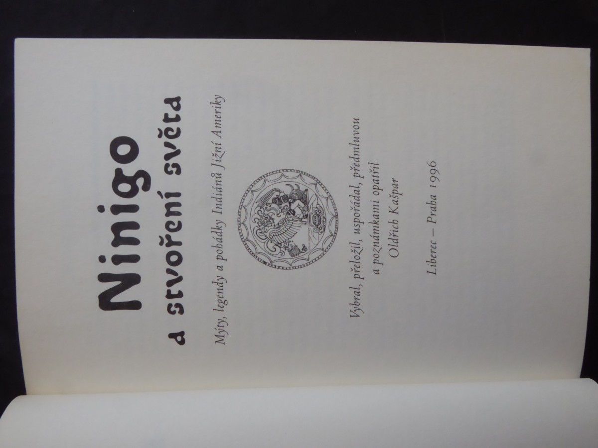 | Digitalizovaná tiráž: | Ninigo a stvoření světa Mýty, legendy a pohádky Indiánů Jižní Ameriky Vybral, přeložil, uspořádal, předmluvou a poznámkami opatřil Oldřich Kašpar Liberec Praha 1996 - |