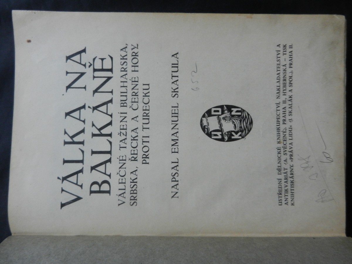 | Digitalizovaná tiráž: | VÁLKA NA BALKÁNĚ VÁLEČNÉ TAŽENÍ BULHARSKA, SRBSKA, ŘECKA A ČERNÉ HORY PROTI TURECKU NAPSAL EMANUEL SKATULA D N 652 ÚSTŘEDNÍ DĚLNICKÉ KNIHKUPECTVÍ, NAKLADATELSTVÍ A ANTIKVARIÁT (A. SVĚCENÝ), PRAHA II., HYBERNSKÁ - TISK KNIHTISKÁRNY PRÁVA LIDU (J. SKALÁK A SPOL.), PRAHA II. |