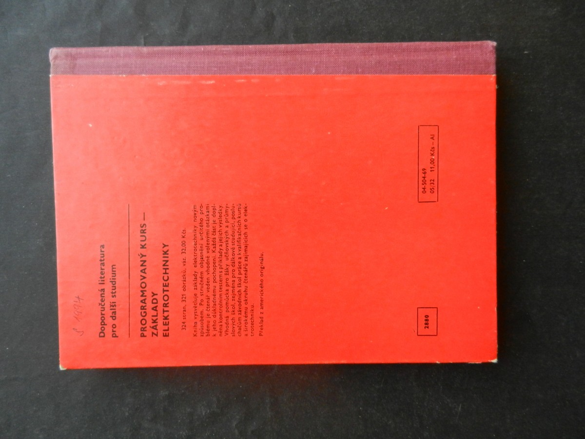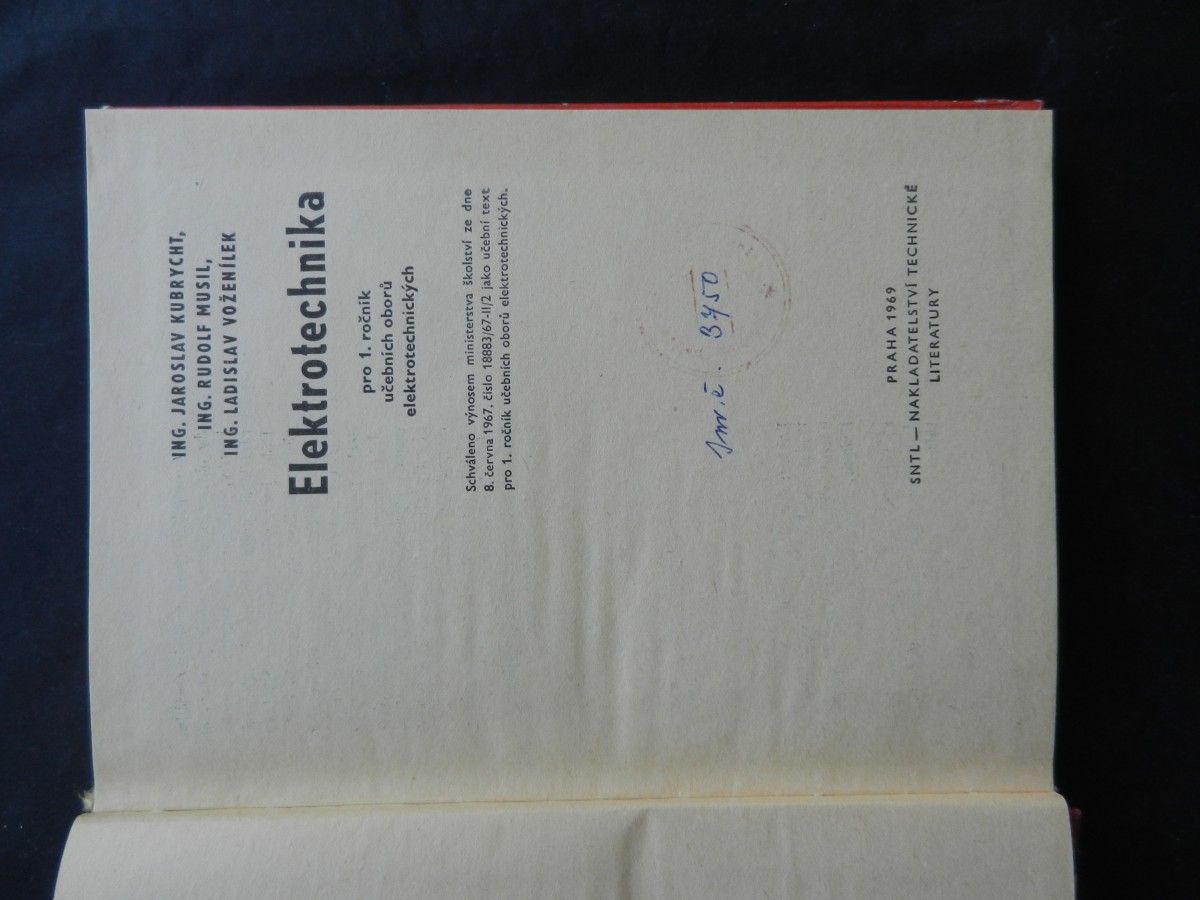 | Digitalizovaná tiráž: | Ing. JAROSLAV KUBRYCHT Ing. RUDOLF MUSIL Ing. LADISLAV VOŽENÍLEK Elektrotechnika pro 1. ročník učebních oborů elektrotechnických DT 621.3 Vydalo SNTL - Nakladatelství technické lite- ratury, n. p., Spálená 51, Praha 1, v roce 1969 jako svou 6275. publikaci v řadě elektrotech- Redakce elektrotechnické nické literatury Odpovědný redaktor Ing. Věra Vazbu navrhl Karel Míšek Technický redaktor Ota Dvořák literatury Verešová Vytiskla Státní tiskárna, n. p., závod 4, Sámova 12, Praha 10228 stran, 150 obrázků, 9 tabu- lek-Typové číslo L25-C1-IV-32/54943/III.- Vydání první - Náklad 30 200 výtisků 12,35 AA, 12,84 VA 05/32 Cena vázaného výtisku 11,00 Kčs - AI 506/23,846 Publikace je určena jako učební text pro 1. ročník učebních oborů elektrotechnických 2880 04-504-69 11,00 Kčs-AI |