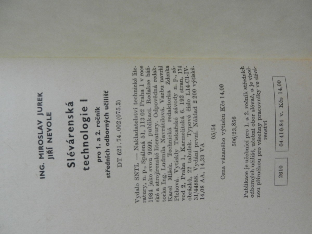 Slévárenská technologie I pro 1. a 2. ročník středních odborných učilišť, 1984