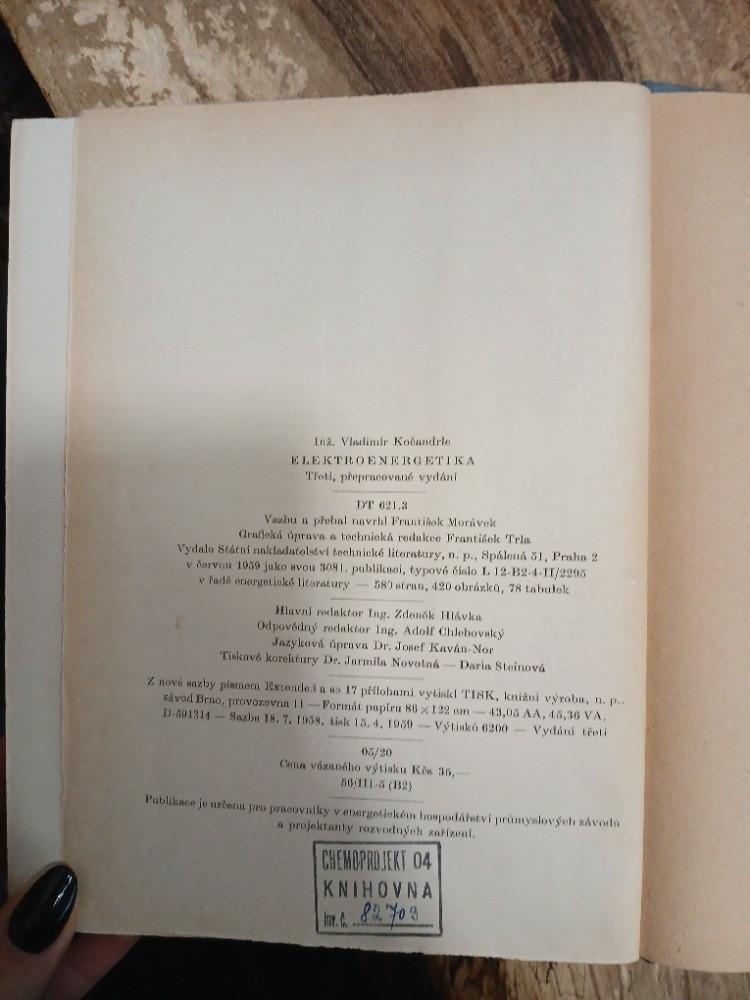 | Digitalizovaná tiráž: | Inž. Vladimir Kočandrle ELEKTROENERGETIKA Třeti, přepracované vydání DT 621.3 Vazbu a přebal navrhl Frantiñok Morávek Grafloká úprava a technická redakce Frantisek Trla Vydalo Státní nakladatelství technické literatury, n. p., Spálená 51, Praha 2 v červnu 1959 jako svou 3081. publiknei, typové číslo L. 12-B2-4-11/2295 v řadě energetické litoratury 580 stran, 420 obrázků, 78 tabulok Hlavni redaktor Ing. Zdeněk Hlávka Odpovědný redaktor Ing. Adolf Chlebovský Jazyková úprava Dr. Josef Kaván-Nor Tiskové korektury Dr. Jarmila Novotná Daria Steinová Z nové sazby písmom Extended a es 17 přílohami vytisk! TISK, knižní výroba, n. p... závod Brno, provozovna 11 Formát papíru 88 x 132 om- D-591314- Sazba 18. 7. 1958, tisk 15. 4, 1959-Výtisků 6200 05/20 Cena vázaného výtisku Kés 35,- 56111-5 (B2) 43,05 AA, 45,36 VA, - Vydání třetí Publikace je určena pro pracovníky v energetickém hospodářství průmyslových závodů a projektanty rozvodných zařízení. CHEMOPROJEKT 04 KNIHOVNA Inv. C. 82703 |