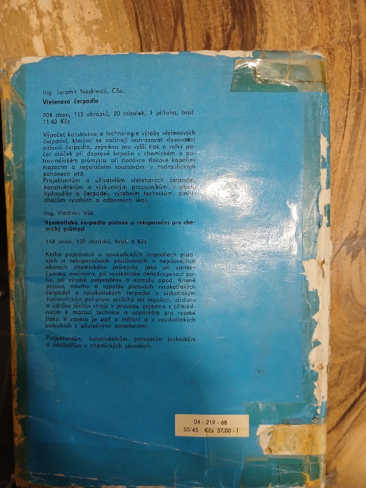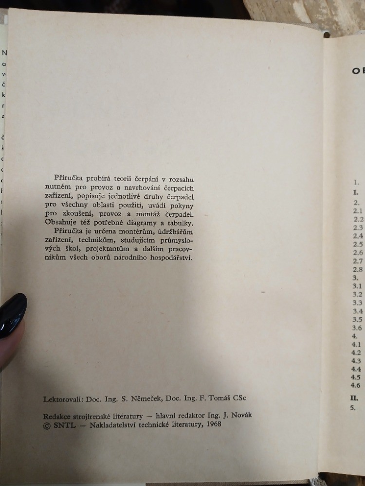 | Digitalizovaná tiráž: | Příručka čerpací techniky DT 621.65/.68 - Redakce Vydalo SNTL Nakladatelství technické literatury, n. p., Spálená 51, Praha 1, v roce 1968 jako svou 6124. publikaci v řadě energetické literatury strojírenské literatury Odpovědná redaktorka Ing. Gabriela Robotková. Vazbu - a přebal navrhl František Morávek. Grafická úprava a technická redakce Antonín Mika, Vytiskl Tisk, n. p., Brno, závod 3, Český Těšín. 452 stran, 535 obrázků, 32 tabulek, 1 vložená příloha (obr. 421, 469) - Typové číslo L 12-El-IV-41/ 2189/IX. Vydání 1. 31,16 AA, 32,01 VA Náklad 5200 výtisků 05-45 Cena vázaného výtisku Kčs 37,00-I 505/21,856 Publikace je určena montérům, údržbářům, technikům, studujícím průmyslových škol, projektantům a konstruktérum CHEMOPROJEKT 04 KNIHOVNA 83078 04-219-68 Kčs 37,00-I |