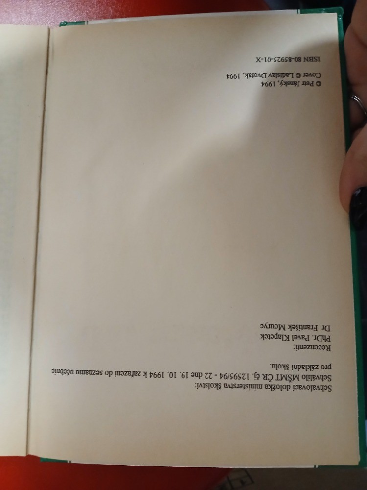 | Digitalizovaná tiráž: | Schvalovací doložka ministerstva školství: Schválilo MŠMT ČR Čj. 12595/94 - 22 dne 19. 10. 1994 k zařazení do seznamu učebnic pro základní školu. Recenzenti: PhDr. Pavel Klapetek Dr. František Mouryc ©Petr Jánský, 1994 Cover Ladislav Dvořák, 1994 ISBN 80-85925-01-X |
