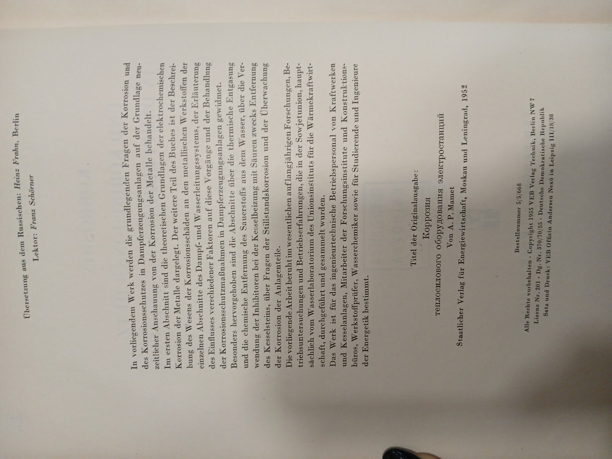 Korrosion und korrosionsschutz in dampferzeugungsanlagen, 1955