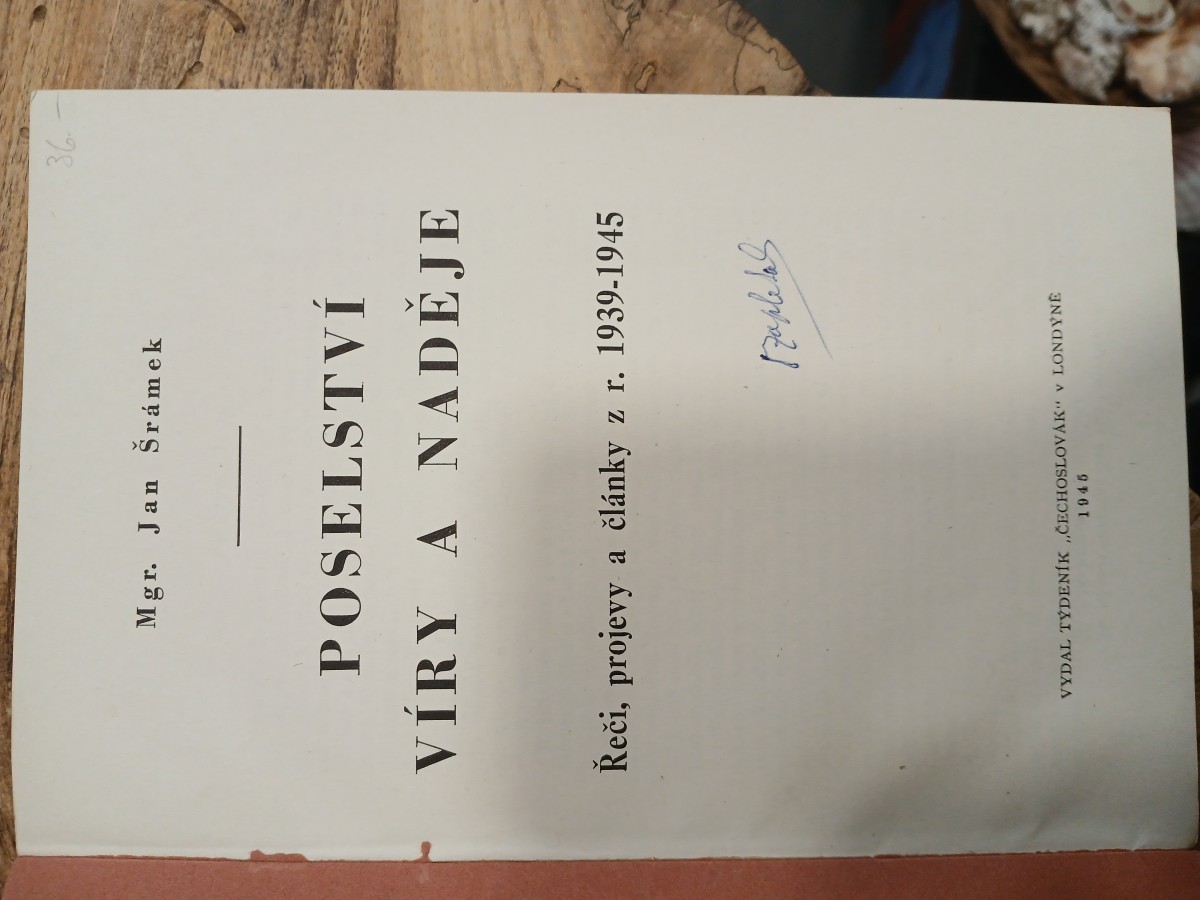 | Digitalizovaná tiráž: | Mgr. Jan Šrámek 36 POSELSTVI VÍRY A NADĚJE Řeči, projevy a články z r. 1939-1945 Maplets VYDAL TÝDENÍK ČECHOSLOVAK" v LONDYNE 1945 |