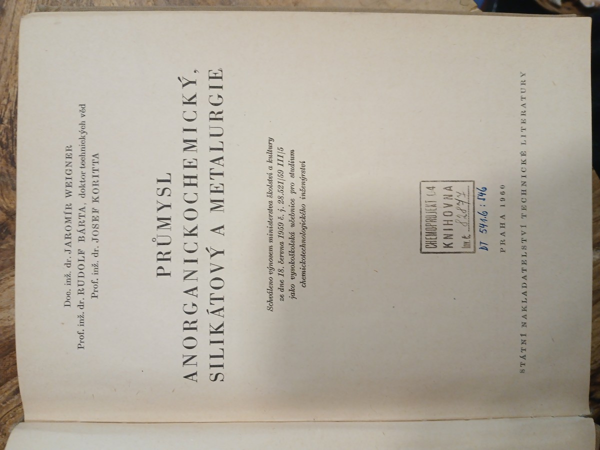 Obecná chemická technologie. I, Průmysl anorganickochemický, silikátový a metalurgický, 1960