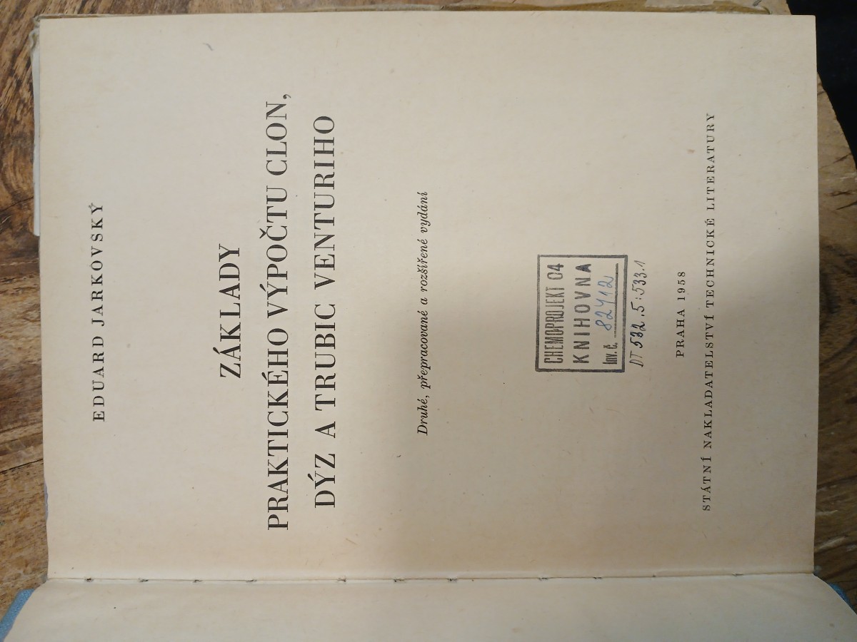 | Název: | Základy praktického výpočtu clon, dýz a trubic Venturiho : Určeno konstrukčním i provozním techn. kádrům stř. a vyš. stupně |