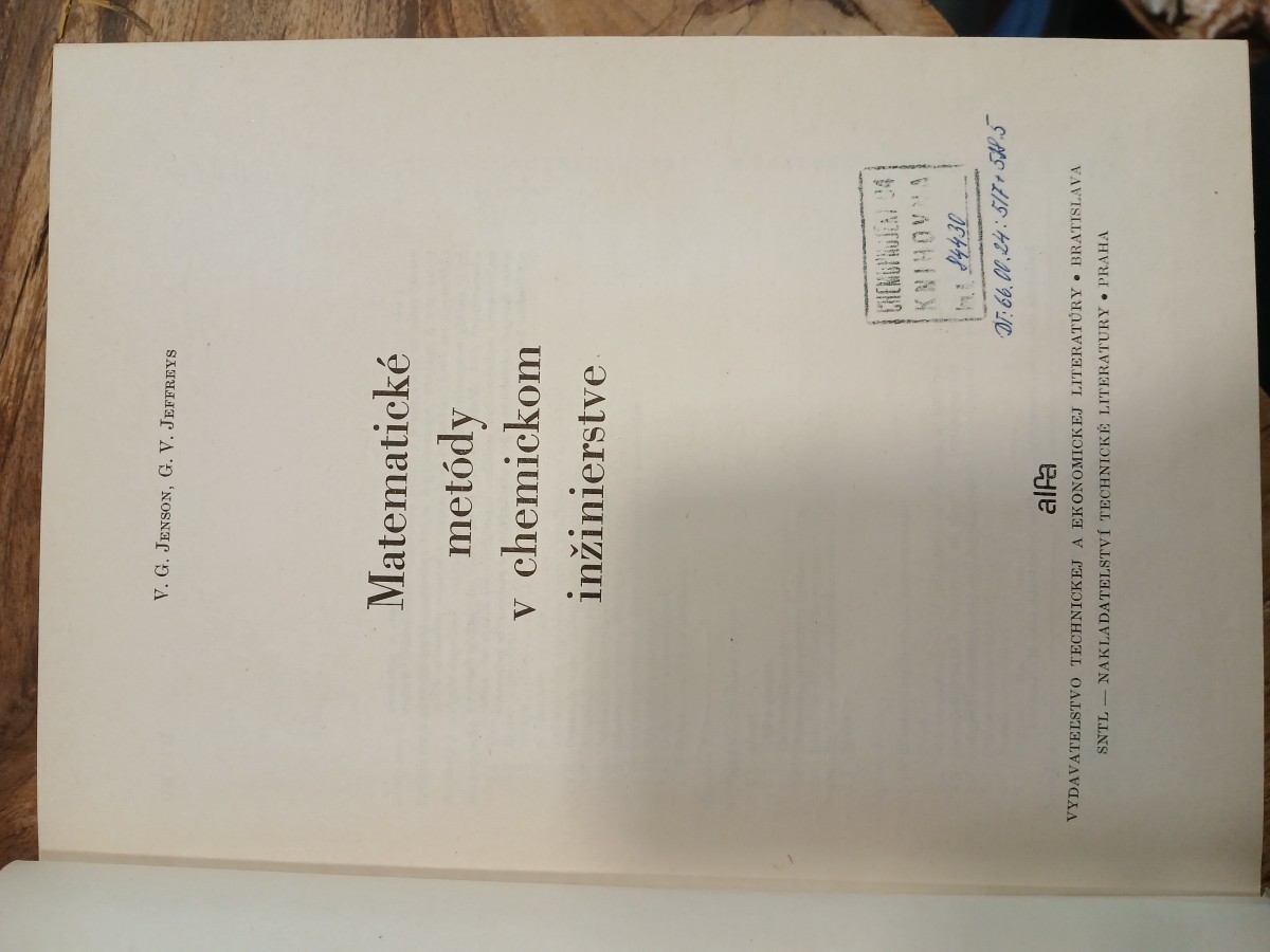 | Digitalizovaná tiráž: | V. G. Jenson, G. F. Jeffreys MATEMATICKÉ METÓDY V CHEMICKOM INŽINIERSTVE MDT 66.001.24: 517518.5 Z anglického originálu Mathematical methods in chemical engineering, ktorý vyšiel v nakla- datelstve Academic Press Inc. Ltd., London 1963, preložili doc. Ing. E. Kossaczký, CSc., Ing. J. Čársky, CSc. a Ing. D. Bobok, CSc. Vydala Alfa, vydavateľstvo technickej a ekonomickej literatúry, n. p., Bratislava, Hurbanovo nám. 6 ako spoločné vydanie s nakladateľstvom SNTL Nakladatelství technické litera- tury, n. p., Praha, Spálená 51, ako svoju 5205. publikáciu Zodpovedná redaktorka Ing. Anna Flochová Technická redaktorka Zora Šinková Obálku a väzbu navrhol Leodegar Horváth Vytlačil TISK, knižní výroba, n. p., Brno, závod 1. 528 strán, 136 obrázkov, 22 tabuliek; 42,62 AH, 44,58 VH Pov. SÚKK-OR čís. 1438/I-OR/72 1. vydanie. Náklad 2 000 výtlačkov 302 03 154 CHEMOPROJEKT C4 KNIHOVNA 184430 D: 66 0024:517518.5 63-083-73 Kčs 45,- Cena brož. Kös 39,60 508/21,8.7/5 |