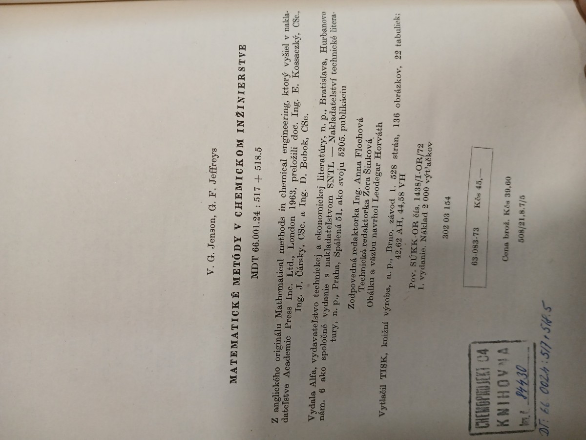 Matematické metódy v chemickom inžinierstve, 1973
