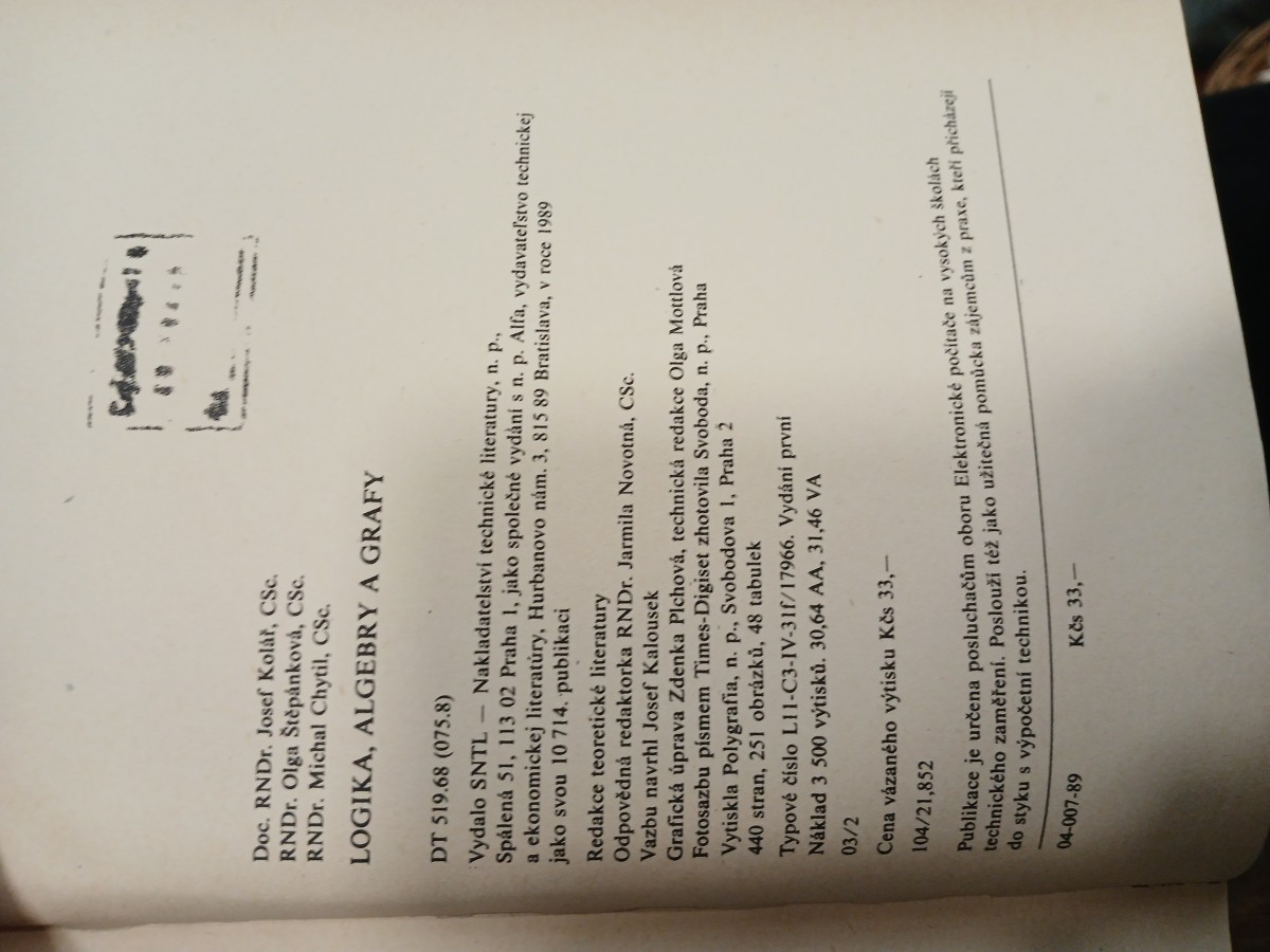 Logika, algebry a grafy : celostátní vysokoškolská učebnice pro elektrotechnické fakulty vysokých škol technických, 1989