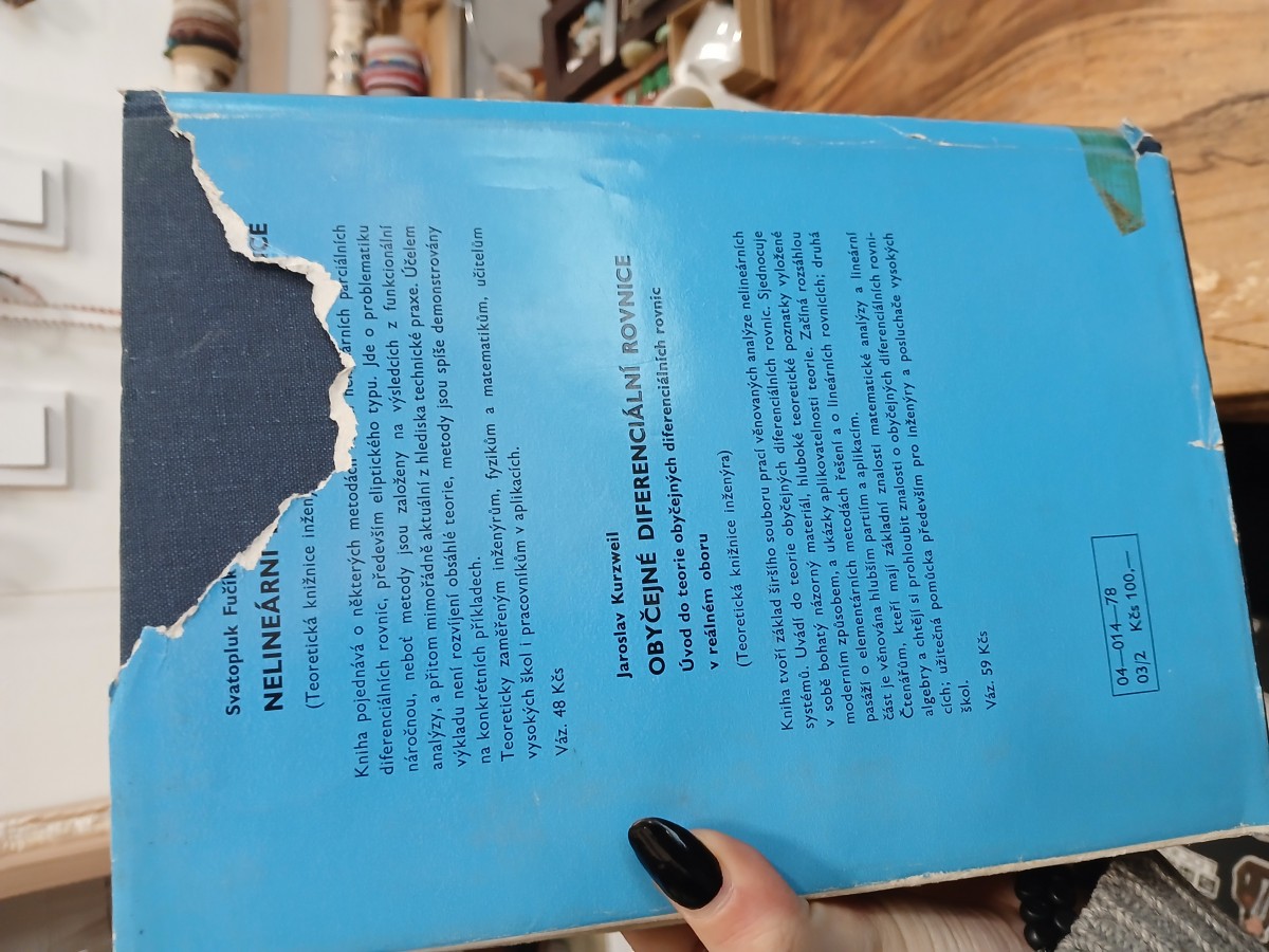 | Digitalizovaná tiráž: | 282 8 Aplikovaná matematika II M až ž DT 51 03:51 Vydalo SNTL - Nakladatelství technické literatury, n. p., Spálená 51, 113 02 Praha 1, v roce 1978 v řadě teoretické literatury jako svou 8288. publikaci. Redakce teoretické literatury. Odpovědný redaktor Ing. Zdeněk Tichý. Rukopis zpracoval RNDr. Jiří Nečas. Revizi rukopisu a náhled korektur provedl Ing. Zdeněk Tichý. Vazbu a přebal navrhl Zdeněk Ziegler. Technická redakce Marie Králová a Jan Šulc. Vytiskla Polygrafia, n. p., závod 6, Prometheus, nositel Řádu práce, Praha 8. 1139-2386 stran, 217 obrázků. Typové číslo L28-S2-V-51/11589. Vydání první. Náklad 11 200 výtisků. 109,26 AA, 117,65 VA 03/2 Cena vázaného výtisku Kčs 100,- 505/21,857 Publikace je určena projektantům, konstruktérům, výzkumným a vývojovým pracovníkům ve všech technických oborech, vysokoškolským pracovníkům a posluchačům vysokých škol k pohotové informaci o jednotlivých matematických pojmech, souvislostech a metodách mezi zvy orech a sh dílo s hes islá. Do j romis vo ovněž v jejich budit ne Redakce ky, kte oditker hého 04-014-78 Kčs 100,- |