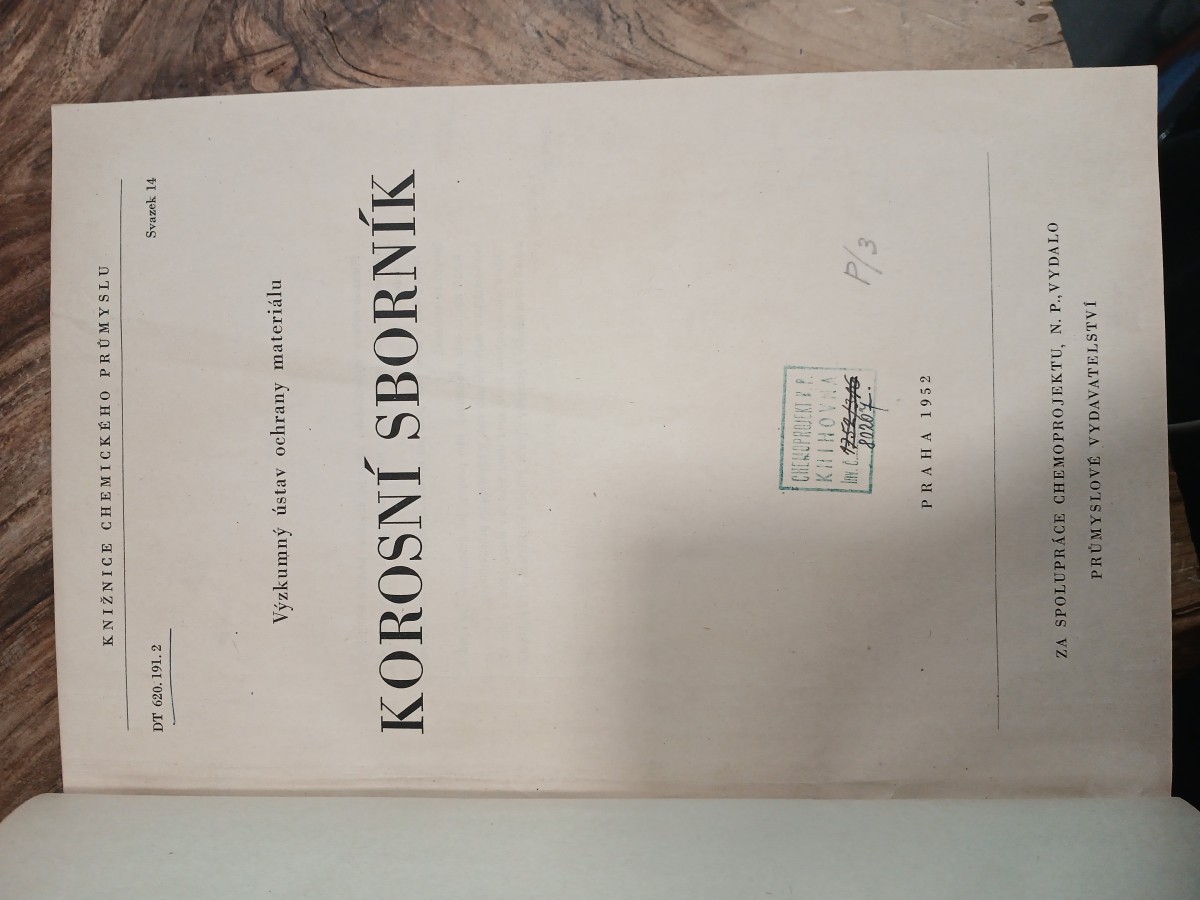| Digitalizovaná tiráž: | DT 620. 191.2 KNIŽNICE CHEMICKÉHO PRŮMYSLU Výzkumný ústav ochrany materiálu Svazek 14 KOROSNÍ SBORNÍK CHEMOPROJEKT P. KHIHOVNA lav. c. 1752/216 80203 PRAHA 1952 P/3 ZA SPOLUPRÁCE CHEMOPROJEKTU, N. P., VYDALO PRŮMYSLOVÉ VYDAVATELSTVÍ |