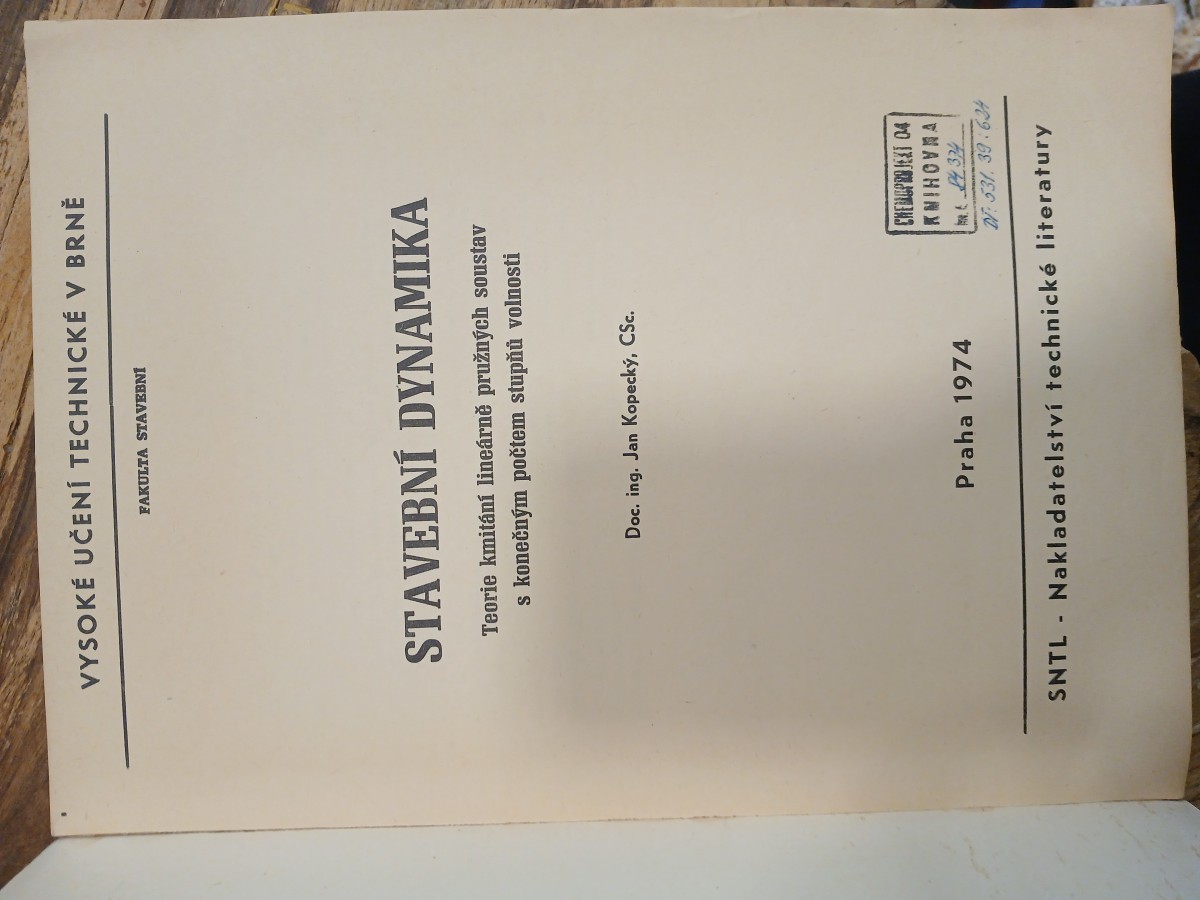 Stavební dynamika : Teorie kmitání lineárně pružných soustav s konečným počtem stupňů volnosti : Určeno pro posl. stavební fak., 1974