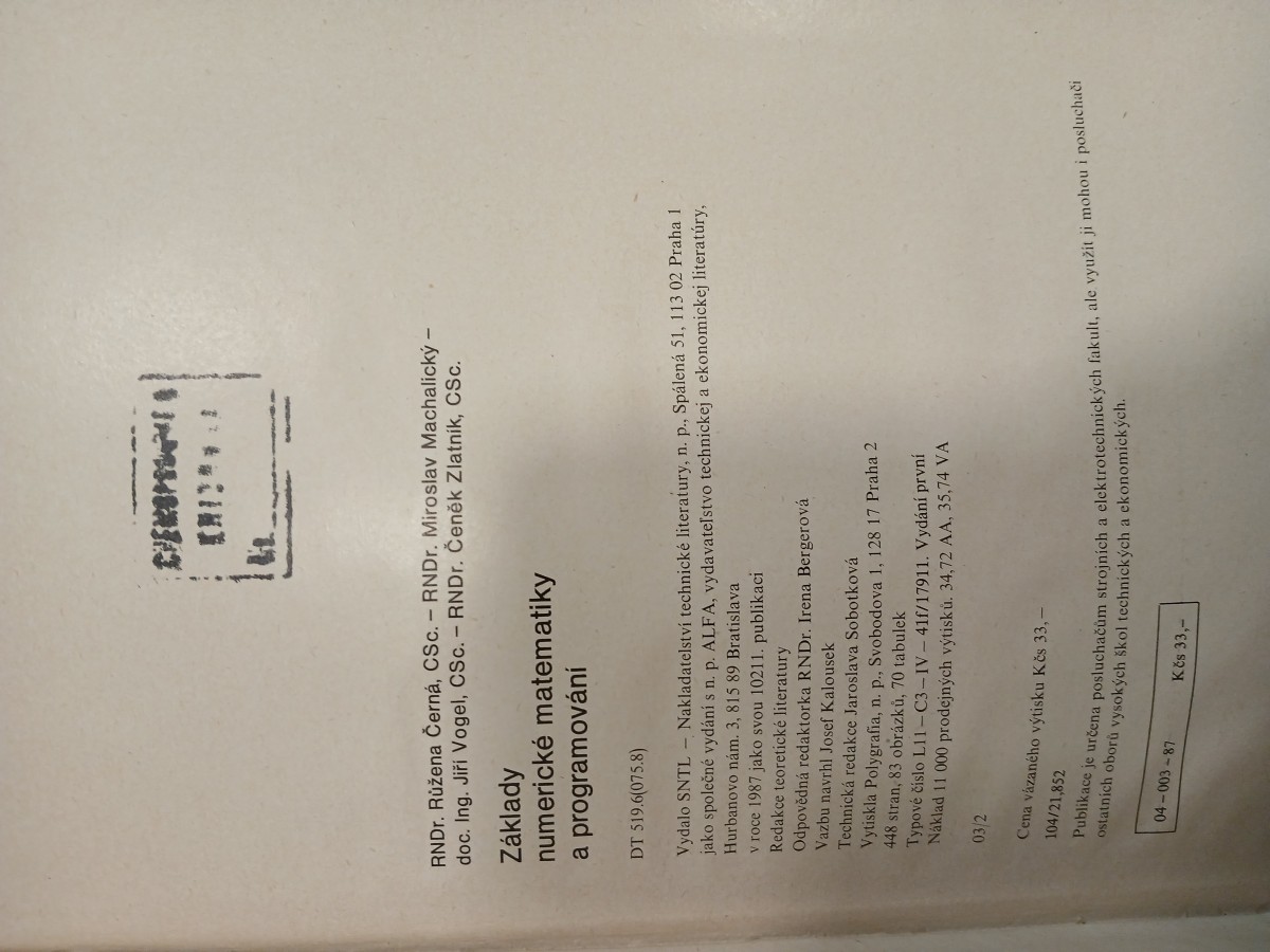| Název: | Základy numerické matematiky a programování : celostátní vysokoškolská učebnice pro strojní, elektrotechnické a stavební fakulty vysokých škol technických |