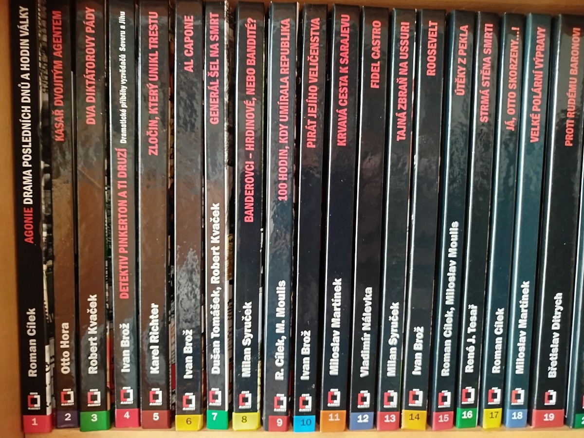 | Poznámka: | Agonie drama posledních dnů a válek (Roman Cílek) Kasař dvojitým agentem (Otto Hora) Dva diktátorovy pády (Robert Kvaček) Detektiv Pinkerton a ti druzí: Dramatické příběhy vyzvědačů Severu a Jihu (Ivan Brož) Zločin, který unikl trestu (Karel Richter) Al Capone (Ivan Brož) Generál šel na smrt (Dušan Tomášek, Robert Kvaček) Banderovci - hrdinové, nebo bandité? (Milan Syruček) 100 hodin, kdy umírala republika (R. Cílek, M. Moulis) Pirát jejího veličenstva (Ivan Brož) Krvavá cesta k Sarajevu (Miloslav Martínek) Fidel Castro (Vladimír Nálevka) Tajná zbraň na Ussuri (Milan Syruček) Roosevelt (Ivan Brož) Útěky z pekla (Roman Cílek, Miloslav Moulis) Strmá stěna smrti (René J. Tesař) Já, Otto Skorzeny...! (Roman Cílek) Velká polární výpravy (Miloslav Martínek) Proti rudému baronovi (Břetislav Ditrych)Miloslav Jenšík: Skoncujeme s nimi! Varšava bude zničena! Robert Kvaček: Poslední den Miloslav Jenšík: Heydrich kontra Anthropoid Martin Nekola: Operace Kondor Miloslav Jenšík: Commandos útočí Milan Hes: Čekání na smrt Emil Hruška: Přivedu vás... na onen svět! Miloslav Jenšík: Noc dlouhých nožů Roman Cílek: Stalingrad Milan Syruček: Slzavé údolí Francie Emil Hruška: Boj o pohraničí Josef Fučík: Doss Alto - Mýtus a skutečnost Miloslav Jenšík: pozor na Alamo Miloslav Jenšík: Červené máky na Monte Cassinu Václav Hubinger: Špion čtyř králů Milan Hes: A brány se otevřely... Emil Hruška: Aktovky v dějináchPŮJDU DO PEKLA SPOKOJEN... (autor Václav Králíček) VZBOUŘENCI A ZTROSKOTANCI (autor Václav Králíček) NACISTÉ A ČESKÉ POKLADY (autor Emil Hruška) RUDÁ HROZBA (autor Daniel Sroh) VAVŘÍNY PRO MRTvé VÍTĚZE (autor Roman Cílek) DANDY NEZNÁ LÁSKY K ŽENĚ (autor Milan Hos) SOUKROMÉ VÁLKY HELENY PETRÁNKOVÉ (autor Miroslav Brož) TÁBOR VE STÍNU OSVĚTIMI (autor Břetislav Ditrych) SPLNĚNÝ SEN MAJORA ROGERSE (autor Josef Opatrný) SMRT VE ŽLUTÉ MLZE (autor Tomáš Dosoudil) ZAPOMENUTÝ MARŠÁLEK (autor Jaroslav Fritsch) HORKÉ LÉTO 1918 (autor Dalibor Vácha) LVI NA VLNÁCH (autor Václav Králíček) KRVAVÝ OSTROV (autor Dalibor Vácha) PROKLETÁ MAGISTRÁLA (autor Dalibor Vácha) PRVNÍ ČECH NA PĚTI KONTINENTECH (autor Jaroslav Kříž) VÁLKA STÍNŮ. (autor Dalibor Vácha) |