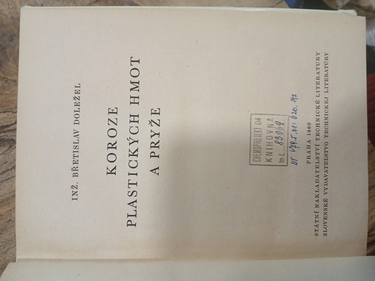 Koroze plastických hmot a pryže : určeno technikům, konstruktérům a inž. v provozech a výzkum. ústavech oboru chem., strojír. a potravinářského, 1960