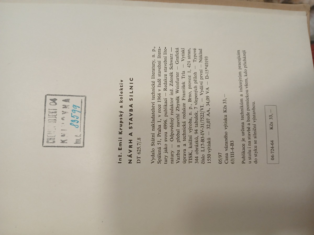 Digitalizovaná tiráž: CHEMOJEKT 04 KNIDYNA 83599 mv.c. Inž. Emil Krupský a kolektiv NÁVRH A STAVBA SILNIC DT 625.7/.8 Vydalo Státní nakladatelství technické literatury, n. p., Spálená 51, Praha 1, v roce 1964 v řadě stavební litera- tury jako svou 4996. publikaci Redakce stavební lite- - ratury Odpovědný redaktor inž. Zdeněk Schwarz - Vazbu a přebal navrhl Zbyněk Weinfurter úprava a technická redakce František Trla - - Grafická Vytiskl TISK, knižní výroba, n. p., Brno, provoz 1, 424 stran, 344 obrázků, 94 tabulek, 7 vlepených příloh číslo L17-B3-IV-31/7522/VI. Vydání první Typové Náklad 1550 výtisků - 32,07 AA, 34,09 VA - D-15*40193 05/97 Cena vázaného výtisku Kčs 33,- 63/III-4-B3 Publikace je určena technikům a inženýrům pracujícím u stolu i na stavbě a bude pomůckou všem, kdo přicházejí do styku se silniční výstavbou. 04-724-64 Kčs 33,-