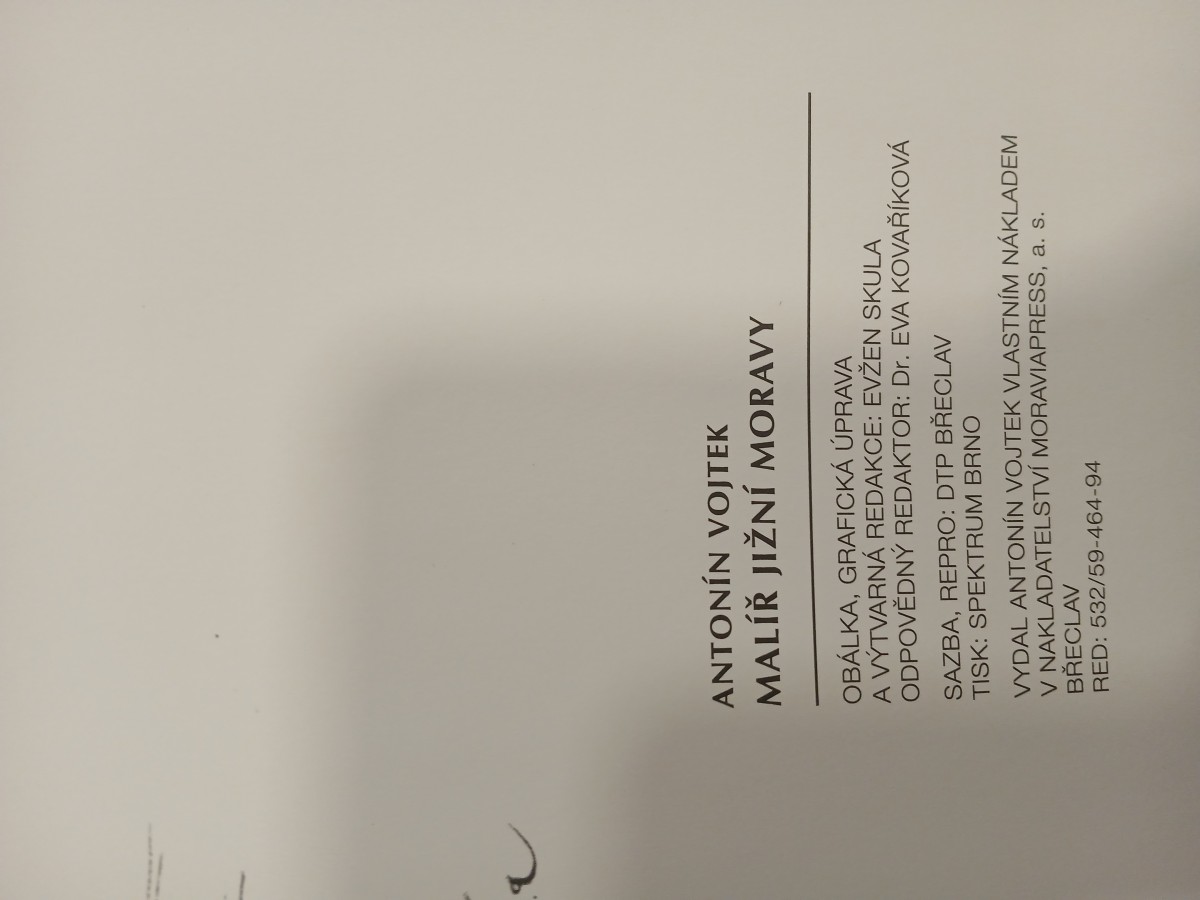 | Digitalizovaná tiráž: | ANTONÍN VOJTEK MALÍŘ JIŽNÍ MORAVY OBÁLKA, GRAFICKÁ ÚPRAVA A VÝTVARNÁ REDAKCE: EVŽEN SKULA ODPOVĚDNÝ REDAKTOR: Dr. EVA KOVAŘÍKOVÁ SAZBA, REPRO: DTP BŘECLAV TISK: SPEKTRUM BRNO VYDAL ANTONÍN VOJTEK VLASTNÍM NÁKLADEM V NAKLADATELSTVÍ MORAVIAPRESS, a. s. BŘECLAV RED: 532/59-464-94 |