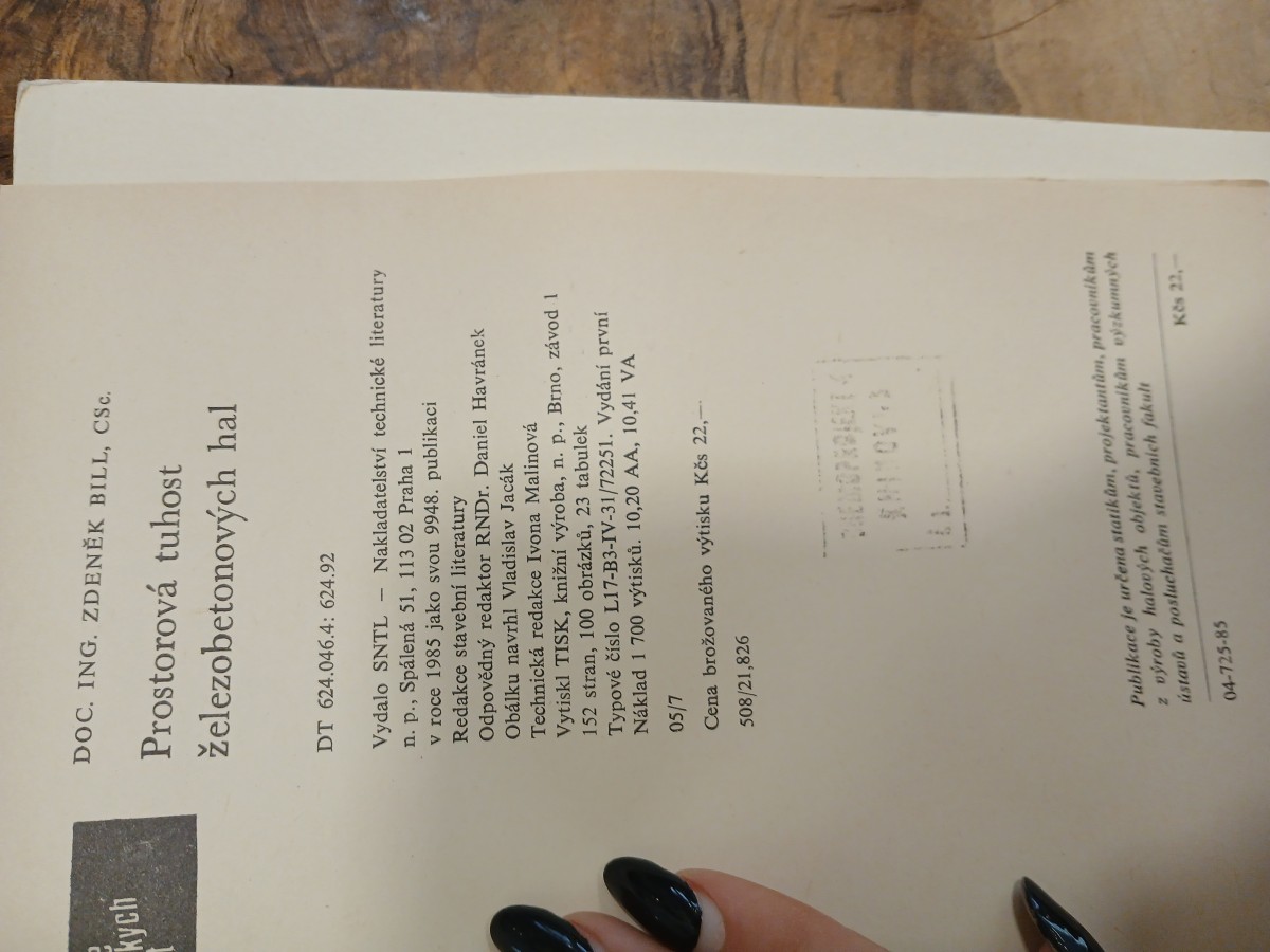 | Digitalizovaná tiráž: | kych DOC. ING. ZDENĚK BILL, CSc. Prostorová tuhost železobetonových hal DT 624.046.4: 624.92 Vydalo SNTL - Nakladatelství technické literatury n. p., Spálená 51, 113 02 Praha 1 v roce 1985 jako svou 9948. publikaci Redakce stavební literatury Odpovědný redaktor RNDr. Daniel Havránek Obálku navrhl Vladislav Jacák Technická redakce Ivona Malinová Vytiskl TISK, knižní výroba, n. p., Brno, závod 1 152 stran, 100 obrázků, 23 tabulek Typové číslo L17-B3-IV-31/72251. Vydání první Náklad 1 700 výtisků. 10,20 AA, 10,41 VA 05/7 Cena brožovaného výtisku Kčs 22,-. 508/21,826 HEMOPROJEKT Publikace je určena statikům, projektantům, pracovnikam z výroby halových objektů, pracovnikům výzkumných ústavů a posluchačům stavebnich fakult 04-725-85 Kes 22,- |