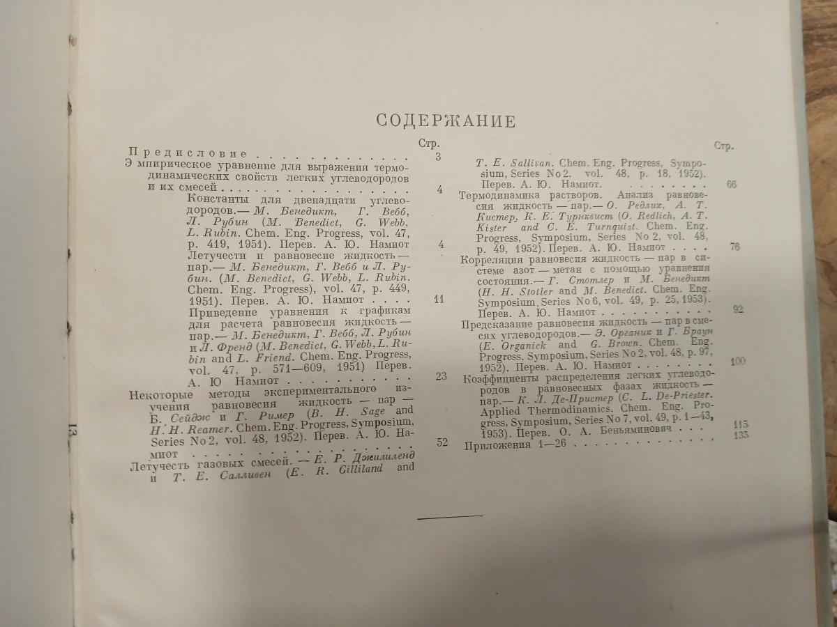 | Digitalizovaná tiráž: | Стр- P Предисловие. СОДЕРЖАНИЕ Эмпирическое уравнение для выражения термо- динамических свойств легких углеводородов и их смесей. ...... Константы для Двенадцати углево- дородов. - М. Бенедикт, Г. Вебб, Л. Рубин (M. Benedict, G. Webb, L. Rubin. Chem. Eng. Progress, vol. 47, р. 419, 1951). Перев. А. Ю. Намиот Летучести и равновесие жидкость пар. - М. Бенедикт, Г. Вебб и Л. Ру- бин. (М. Веnedict, G. Webb, L. Rubin. Chem. Eng. Progress), vol. 47, р. 449, 1951). Перев. А. Ю. Намиот к графикам Приведение уравнения для расчета равновесия жидкость - пар. - М. Бенедикт, Г. Вебб, Л. Рубин и Л. Френд (M. Benedict, G. Webb, L. Ru- bin and L. Friend. Chem. Eng. Progress, vol. 47, p. 571-609, 1951) Перев. А. Ю Намиот жидкость пар из- Некоторые методы экспериментального учения равновесия Б. Сейдж и Г. Ример (B. H. Sage and H.H. Reamer. Chem. Eng. Progress, Symposium, Series No 2, vol. 48, 1952). Перев. А. Ю. На- Миот ... .. Летучесть газовых смесей. Стр. 3 11 23 52 and - Е. Р. Джилиленд и Т. Е. Салливен (E. R. Gilliland Т. Е. Sallivan. Chem. Eng. Progress, Sympo- sium, Series No2, vol. 48, р. 18, 1952). Перев. А. Ю. Намиот. Термодинамика растворов. Анализ равнове сия жидкость Kister . пар. - О. Редлих, А. Т. Кистер, К. Е. Турнквист (0. Redlich, A. T. and C. E. Turnquist. Chem. Eng. Progress, Symposium, Series No 2, vol. 48, р. 49, 1952). Перев. А. Ю. Намиот Корреляция равновесия жидкость пар в си- стеме азот - метан с помощью уравнения состояния. - Г. Стотлер и М. Бенедикт (H. H. Stotler and M. Benedict. Chem. Eng. Symposium. Series No 6, vol. 49, р. 25, 1953). Перев. А. Ю. Намиот and Предсказание равновесия жидкость пар в сме- сях углеводородов. - Э. Органик и Г. Браун (E. Organick G. Brown. Chem. Eng. Progress, Symposium, Series No 2, vol. 48, p. 97, 1952). Перев. А. Ю. Намиот Коэффициенты распределения легких углеводо- родов в равновесных фазах жидкость пар. - К. Л. Де-Пристер (С. L. De-Priester. Applied Thermodinamics. Chem. Eng. Pro- gress, Symposium, Series No 7, vol. 49, p. 1-43, 1953). Перев. О. А. Беньяминович Приложения 1-26 76 76 92 100 115 135 66 |
