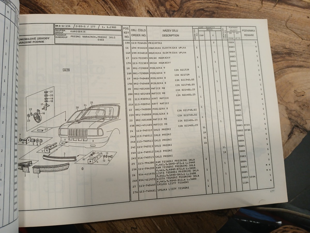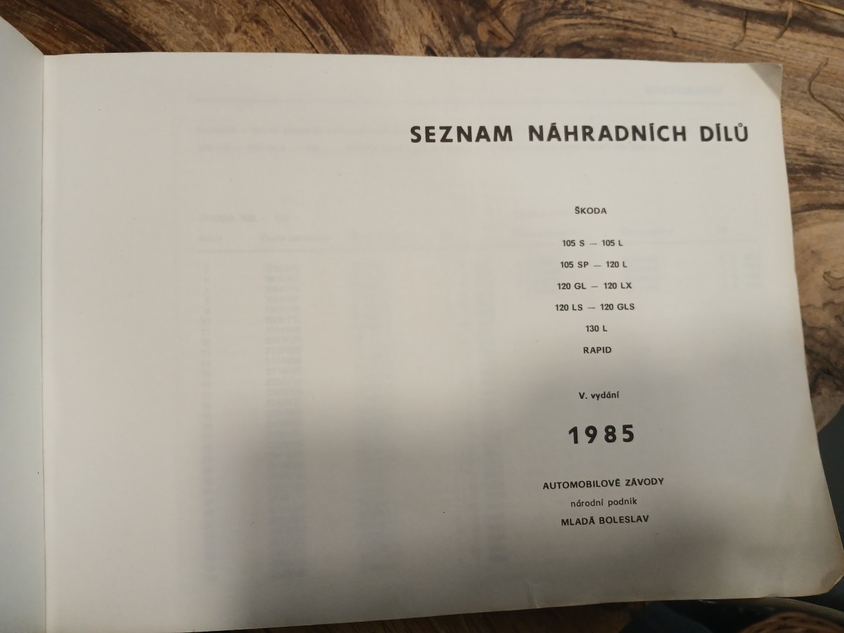 Seznam náhradních dílů Škoda 105, 120, 130, Rapid, 1985