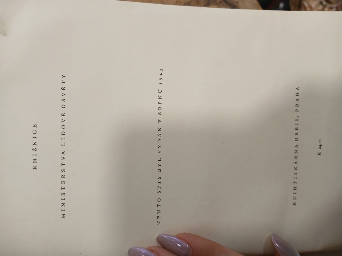 | Digitalizovaná tiráž: | KNIZNICE MINISTERSTVA LIDOVÉ OSVĚTY TENTO SPIS BYL VYDAN V SRPNU 1943 KNIH TISKÁRNA ORBIS, PRAHA K 24,- |