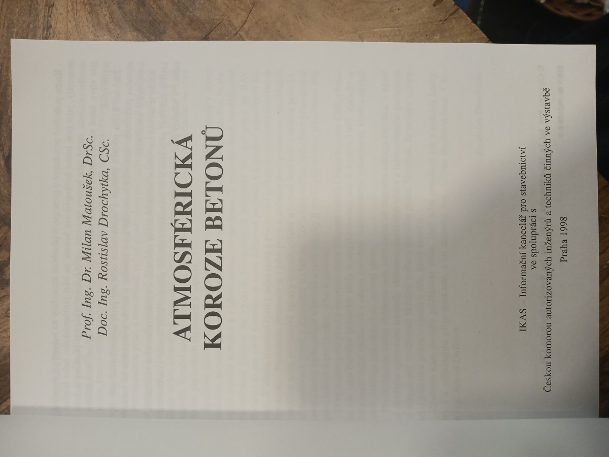 | Digitalizovaná tiráž: | Prof. Ing. Dr. Milan Matoušek, DrSc. Doc. Ing. Rostislav Drochytka, CSc. ATMOSFÉRICKÁ KOROZE BETONŮ IKAS - Informační kancelář pro stavebnictví ve spolupráci s Českou komorou autorizovaných inženýrů a techniků činných ve výstavbě Praha 1998 |