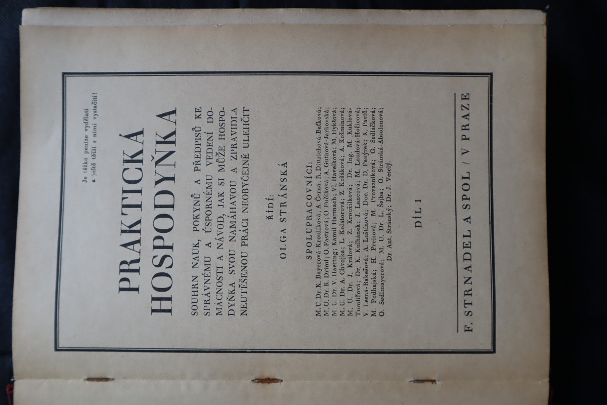 | Digitalizovaná tiráž: | Je těžko peníze vydělatí a ještě těžší s nimi vystačiti! PRAKTICKÁ HOSPODYNKA SOUHRN NAUK, POKYNŮ A PŘEDPISŮ KE SPRÁVNÉMU A ÚSPORNÉMU VEDENÍ DO- MÁCNOSTI A NÁVOD, JAK SI MŮŽE HOSPO- DYŇKA SVOU NAMÁHAVOU A ZPRAVIDLA NEUTĚŠENOU PRÁCI NEOBYČEJNĚ ULEHČIT ŘÍDÍ: OLGA STRÁNSKÁ SPOLUPRACOVNÍCI: M. U. Dr. K. Bayerová-Kroulíková; A. Černá; R. Dittrichová-Baťková; M. U. Dr. K. Driml; O. Fastrová; O. Fučíková; A. Guthová-Jarkovská; M. U. Dr. V. Haering; Kamil Harmach; VI. Havelková; M. Hykšová; M. U. Dr. A. Chvojka; L. Kolátorová; Z. Košáková; A. Kožmínová; M. U. Dr. J. Králová; Z. Kroužilková; Dr. Ing. M. Kuklová- Tumlířová; Dr. K. Kulhánek; J. Lancová; M. Laudová-Hořicová; V. Lesná-Bakešová; A. Luštínová; Doc. Dr. D. Panýrek; K. Pavlů; M. Podhajská; H. Preisová; M. Provazníková; G. Sedláčková; O. Sedlmayerová; M. U. Dr. L. Šejba; O. Stránská-Absolonová; Dr. Ant. Stránský; Dr. J. Veselý. DÍL I F. STRNADEL A SPOL V PRAZE |