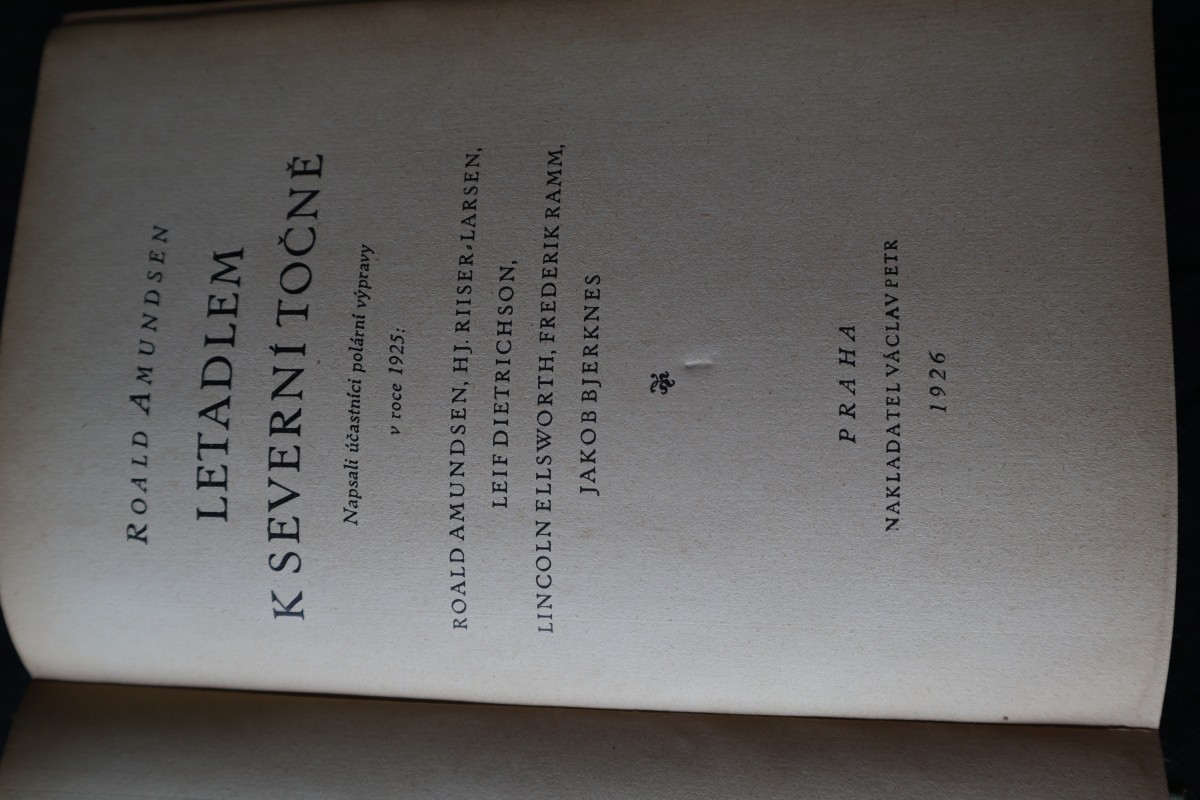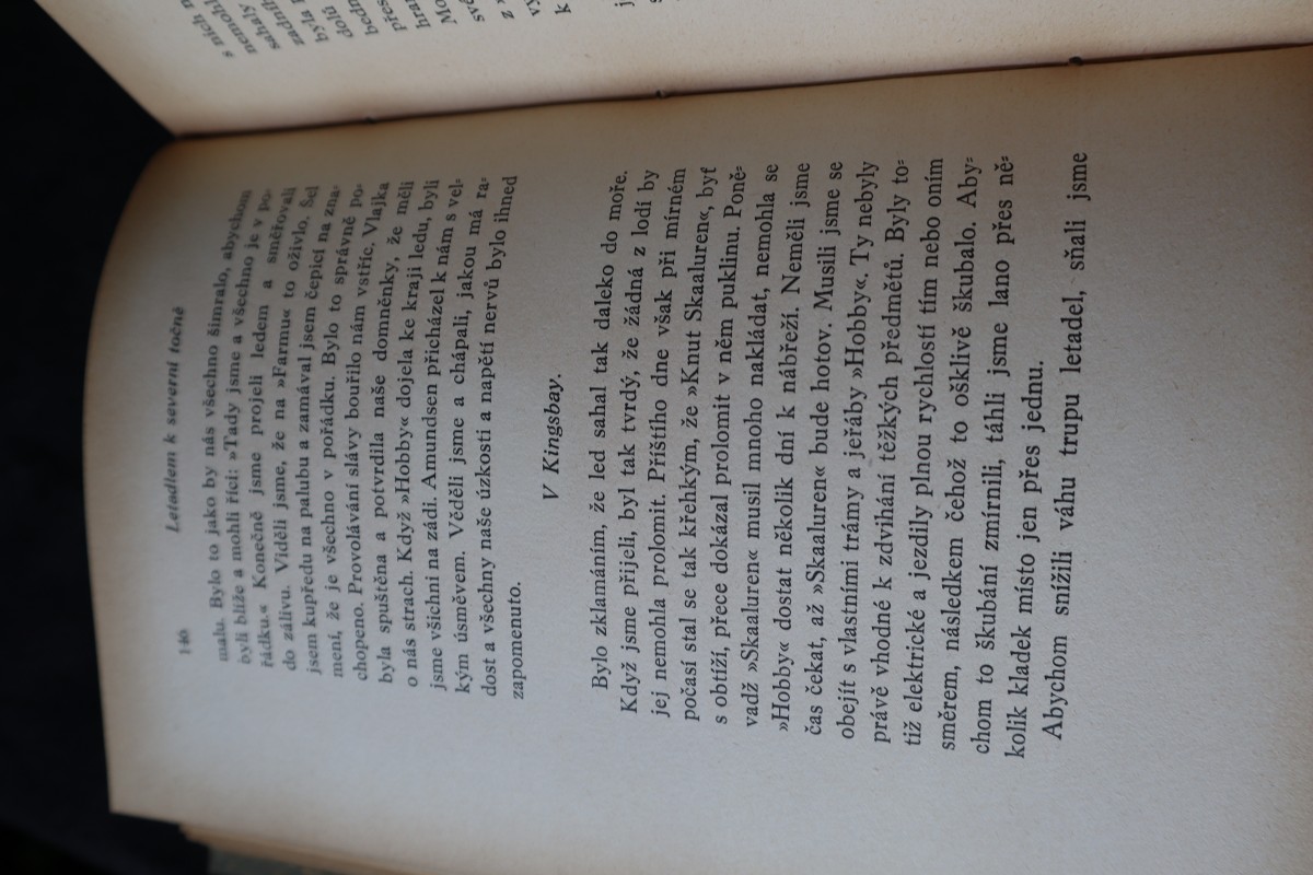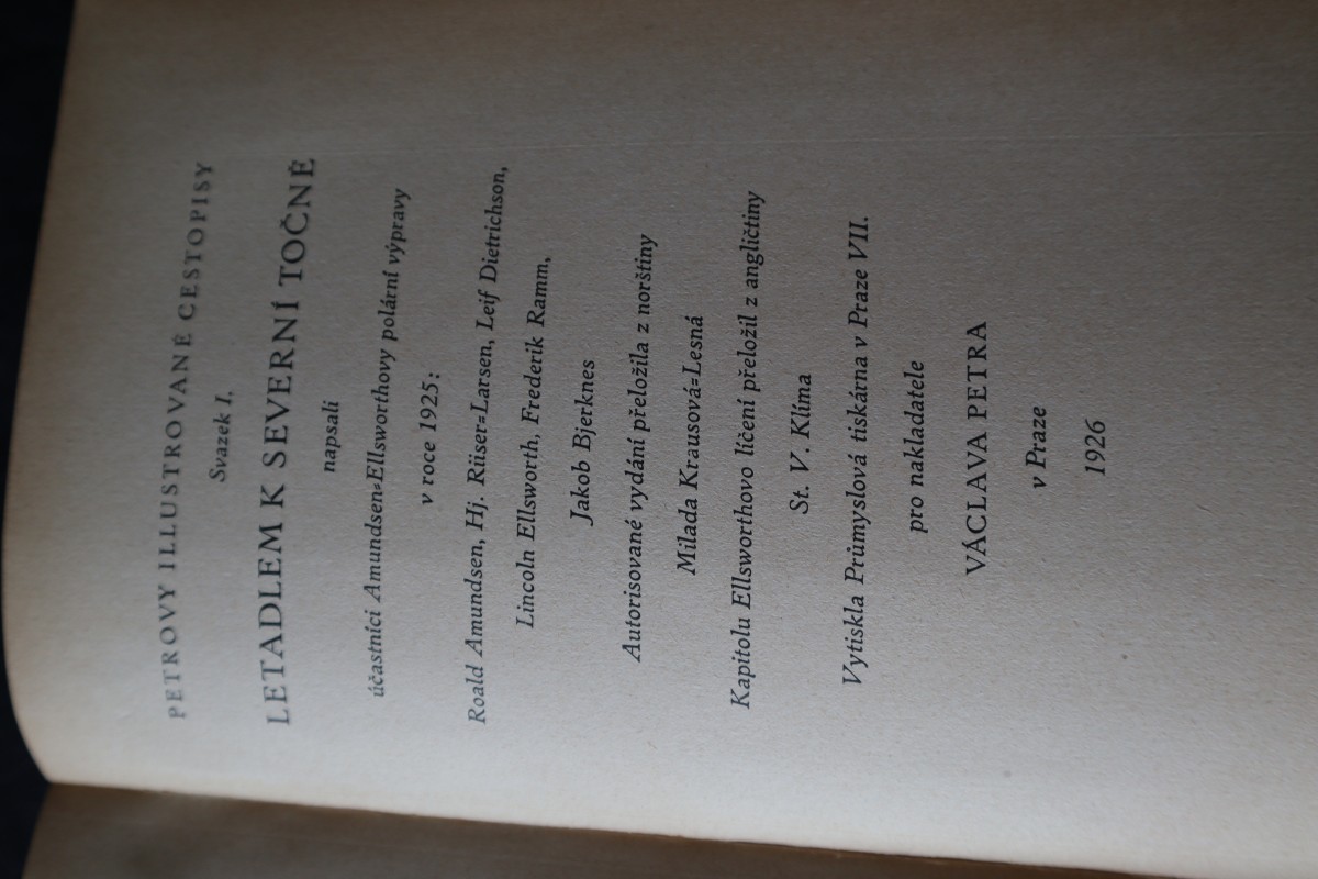 | Digitalizovaná tiráž: | PETROVY ILLUSTROVANÉ CESTOPISY Svazek I. LETADLEM K SEVERNÍ TOČNĚ napsali účastníci Amundsen-Ellsworthovy polární výpravy v roce 1925: Roald Amundsen, Hj. Rüser-Larsen, Leif Dietrichson, Lincoln Ellsworth, Frederik Ramm, Jakob Bjerknes Autorisované vydání přeložila z norštiny Milada Krausová Lesná Kapitolu Ellsworthovo líčení přeložil z angličtiny St. V. Klíma Vytiskla Průmyslová tiskárna v Praze VII. pro nakladatele VÁCLAVA PETRA v Praze 1926 |