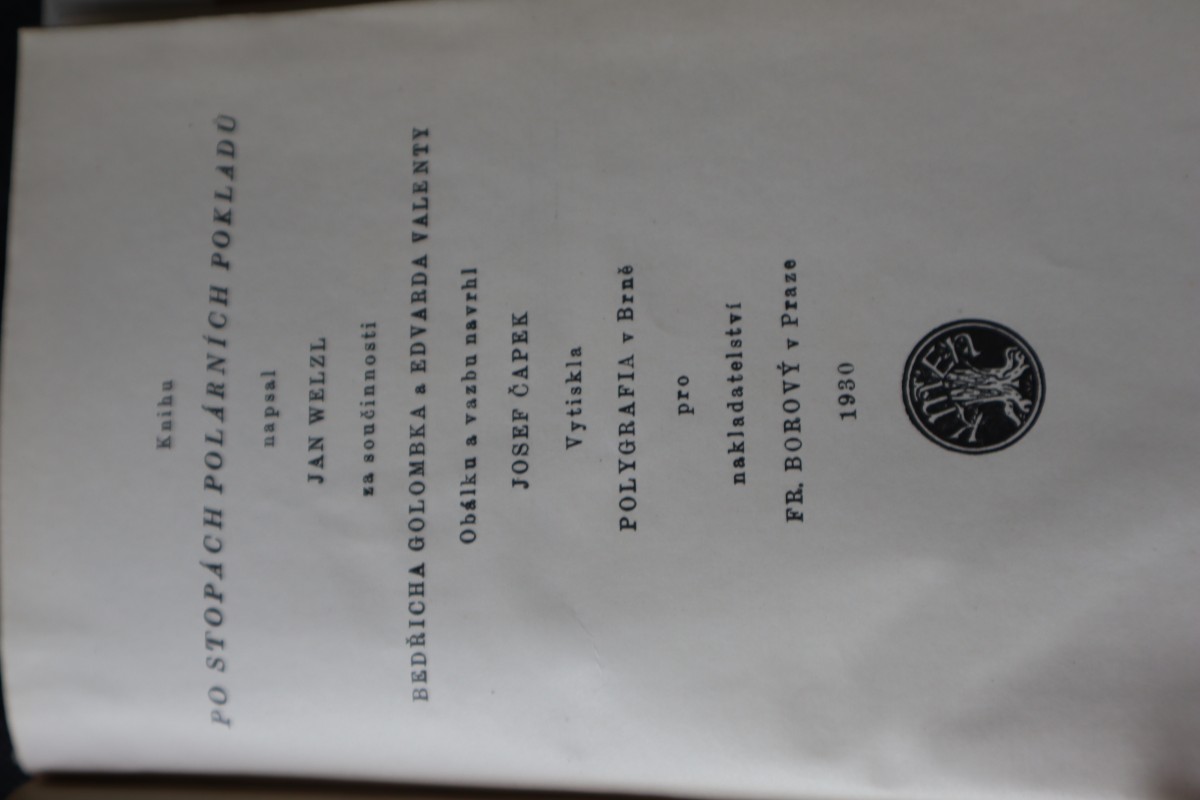 | Digitalizovaná tiráž: | Knihu PO STOPÁCH POLÁRNÍCH POKLADŮ napsal JAN WELZL za součinnosti BEDŘICHA GOLOMBKA & EDVARDA VALENTY Obálku a vazbu navrhl JOSEF ČAPEK Vytiskla POLYGRAFIA v Brně pro nakladatelství FR. BOROVÝ v Praze 1930 |