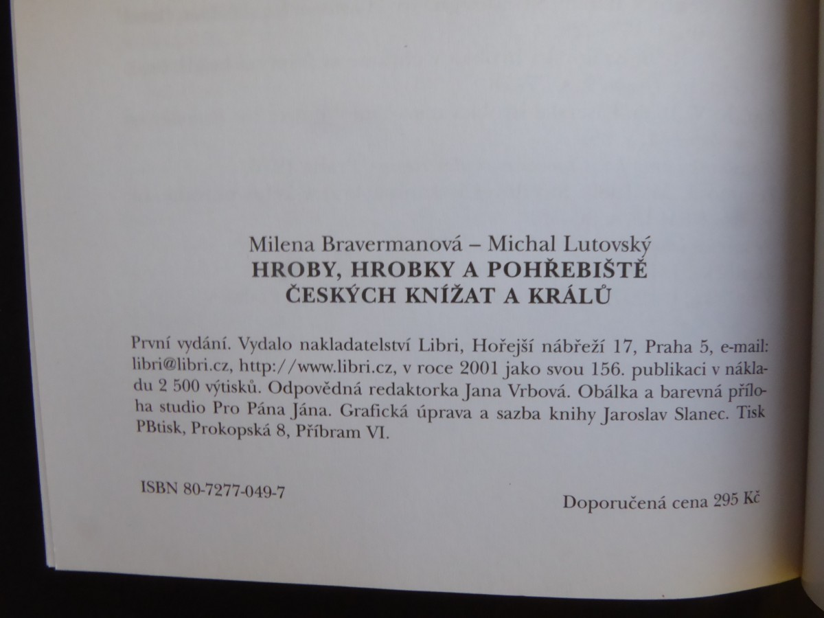 | Digitalizovaná tiráž: | Milena Bravermanová - Michal Lutovský HROBY, HROBKY A POHŘEBIŠTĚ ČESKÝCH KNÍŽAT A KRÁLŮ První vydání. Vydalo nakladatelství Libri, Hořejší nábřeží 17, Praha 5, e-mail: libri@libri.cz, http://www.libri.cz, v roce 2001 jako svou 156. publikaci v nákla- du 2 500 výtisků. Odpovědná redaktorka Jana Vrbová. Obálka a barevná přílo- ha studio Pro Pána Jána. Grafická úprava a sazba knihy Jaroslav Slanec. Tisk PBtisk, Prokopská 8, Příbram VI. ISBN 80-7277-049-7 Doporučená cena 295 Kč |