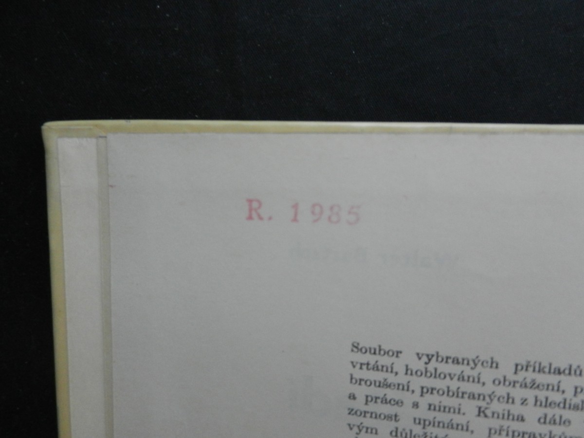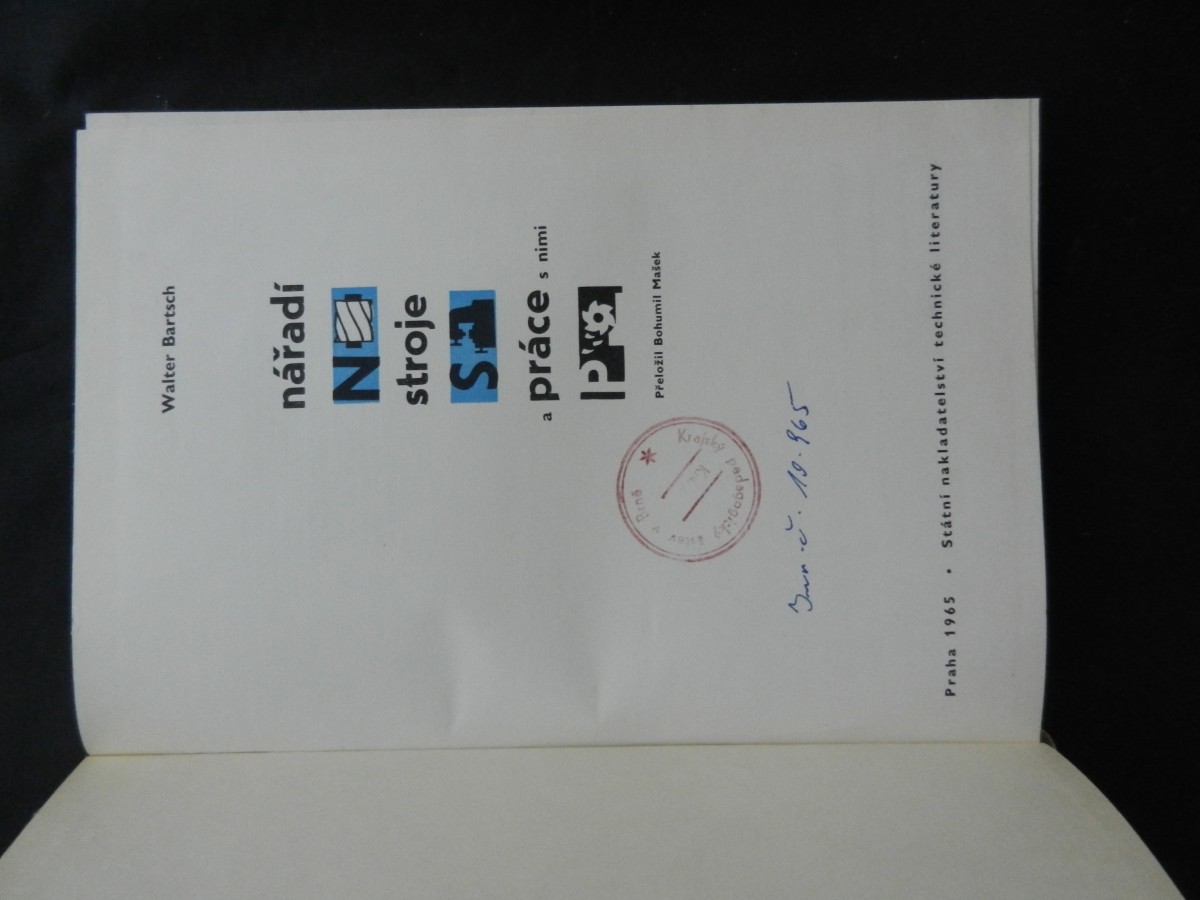 | Digitalizovaná tiráž: | stav A Brně * Krajsky Грубовер Walter Bartsch NÁŘADÍ, STROJE A PRÁCE S NIMI DT 621.91.07/621.9.01 Z německého originálu Werkzeuge, Maschinen, Arbeiten, vydaného nakladatelstvím Georg Westermann Verlag v Braunschweigu roku 1963 přeložil Bohumil Mašek. Vydalo Státní nakla- datelství technické literatury, n. p., Spálená 51, Praha 1, v roce 1965 jako svou 5431. publikaci v řadě strojírenské literatury Redakce strojírenské literatury - Ludmila Macourková Vazbu navrhl Zbyněk Weinfurter. Vytiskl Knihtisk, n. p., provoz 4, Praha 10, Sámova ul. 12 - Odpovědná redaktorka Technická redakce Jiří Appl. 240 stran, 592 obrázků, Typové číslo L13-B4-IV-32/22080-XII. - Vydání první Náklad 5200 výtisků 24,69 AA, 25,40 VA-D-15*50242 05-61 Cena brožovaného výtisku 25,50 Kčs Cena vázaného výtisku 32,50 Kčs 63/III-12-B4 Publikace je určena dělníkům a mistrům, žákům odborných škol a učilišť i učitelům ve všech oborech zpracujících kovy 04-251-65 Kčs 25,50 b. 04-252-65 Kčs 32,50 v. |