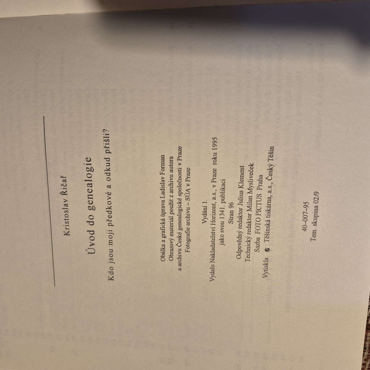 Úvod do genealogie : kdo jsou moji předkové a odkud přišli?, 1995